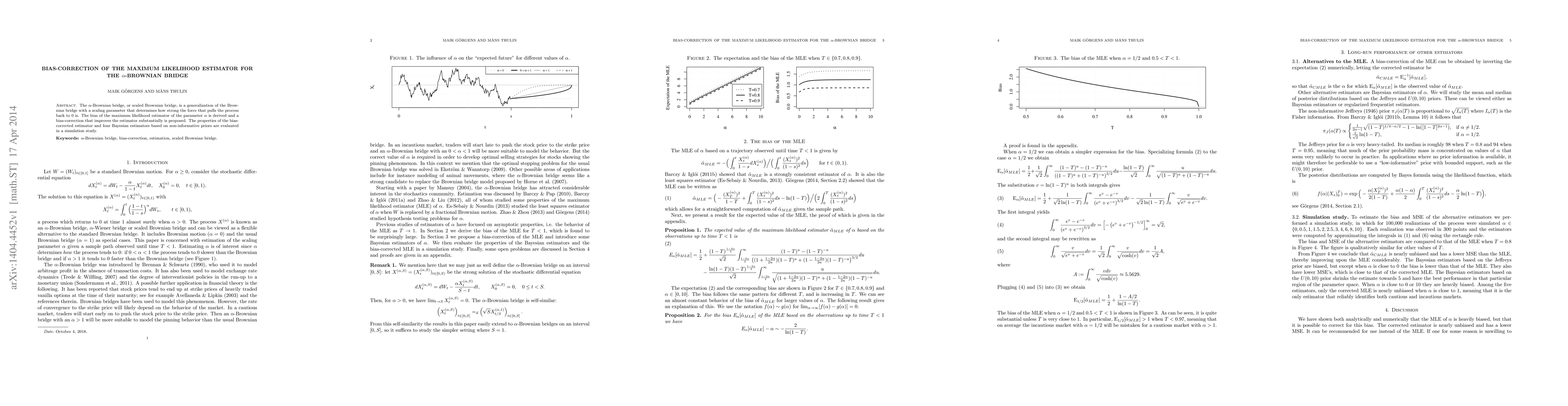 This paper derives the bias of the maximum likelihood estimator for the $\alpha$-Brownian bridge and proposes a bias-correction method that significantly improves the estimator. A simulation study evaluates the properties of the corrected estimator and four Bayesian estimators.