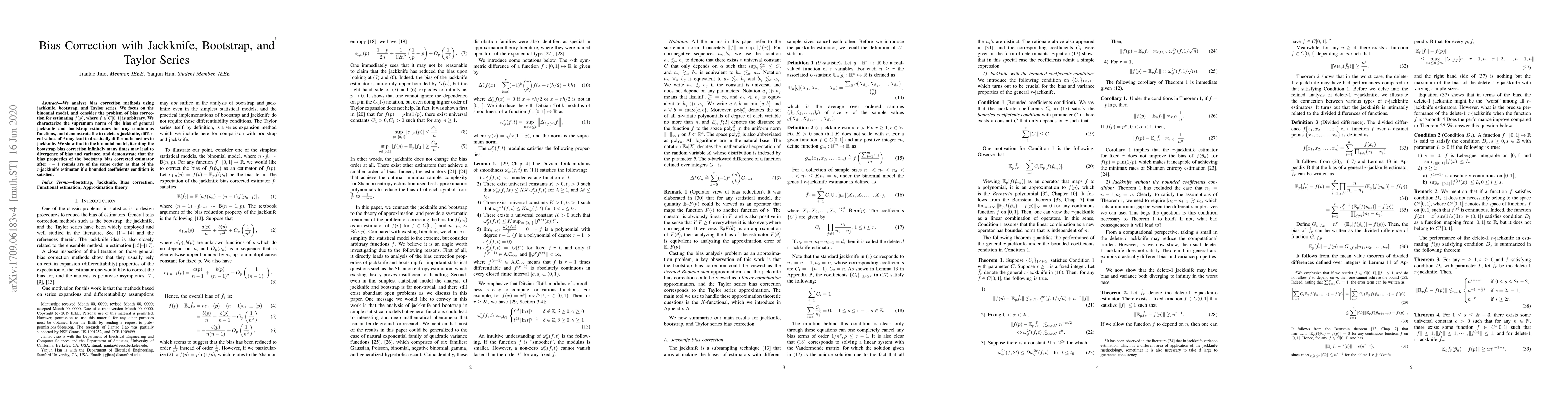 This paper examines bias correction techniques using jackknife, bootstrap, and Taylor series, focusing on the binomial model for estimating functions $f(p)$. It investigates the supremum norm of bias in jackknife and bootstrap estimators and finds that different jackknife iterations can yield vastly different results, while iterating bootstrap correction infinitely may lead to divergence.