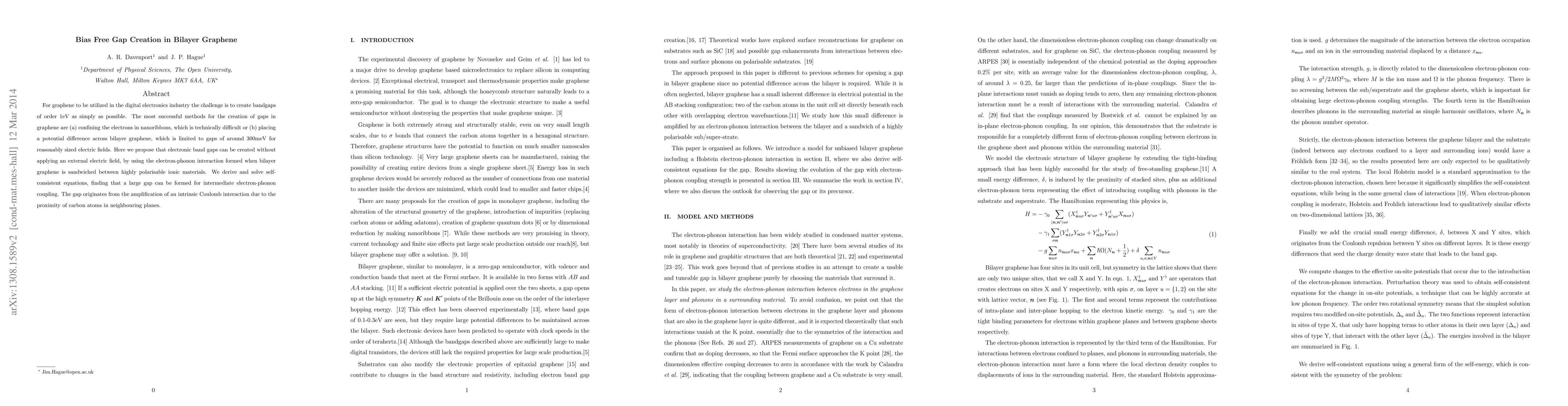 For graphene to be utilized in the digital electronics industry the challenge is to create bandgaps of order 1eV as simply as possible. The most successful methods for the creation of gaps in graphene are (a) confining the electrons in nanoribbons, which is technically difficult or (b) placing a potential difference across bilayer graphene, which is limited to gaps of around 300meV for reasonably sized electric fields. Here we propose that electronic band gaps can be created without applying an external electric field, by using the electron-phonon interaction formed when bilayer graphene is sandwiched between highly polarisable ionic materials. We derive and solve self-consistent equations, finding that a large gap can be formed for intermediate electron-phonon coupling. The gap originates from the amplification of an intrinsic Coulomb interaction due to the proximity of carbon atoms in neighbouring planes.
