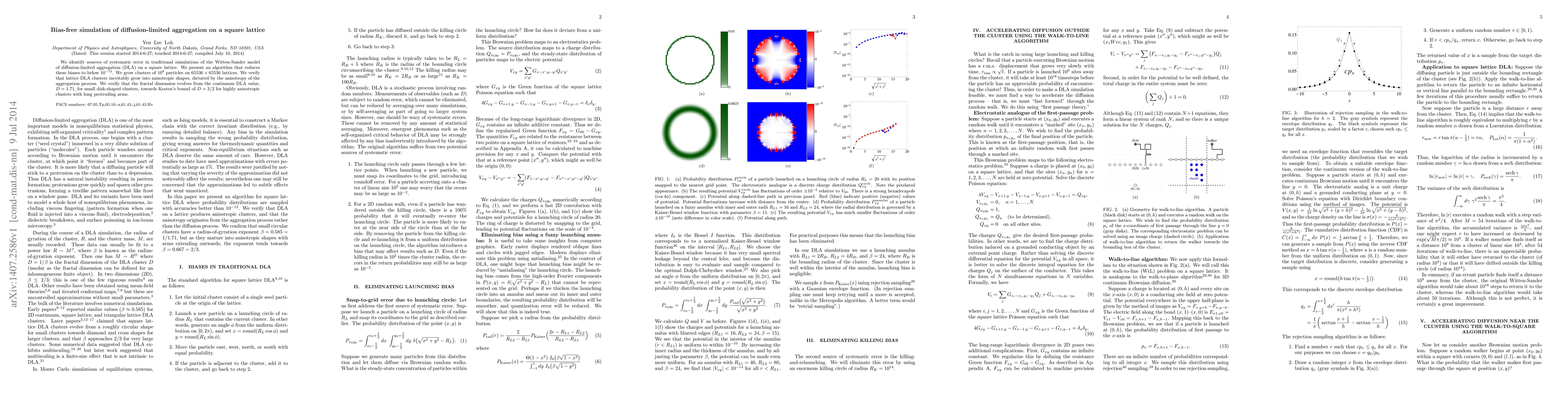 This paper identifies and corrects systematic errors in traditional simulations of diffusion-limited aggregation (DLA) on a square lattice, presenting an algorithm with bias reduction below $10^{-12}$. It demonstrates that lattice DLA clusters grow into anisotropic shapes and shows the fractal dimension evolving from $D=1.71$ to $D=3/2$ as clusters become more anisotropic.