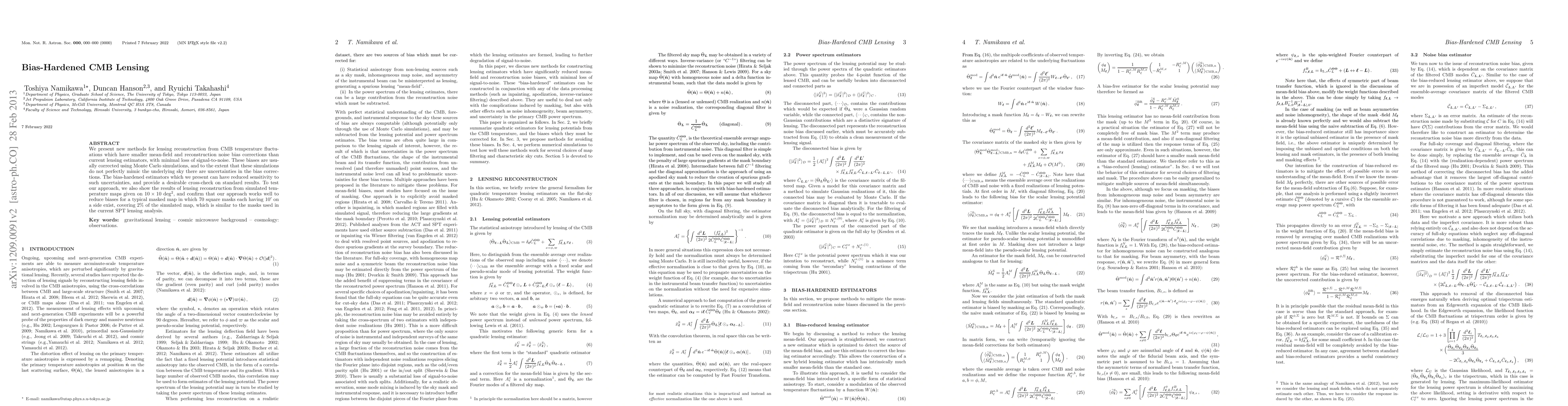 The paper presents new methods for lensing reconstruction from CMB temperature fluctuations, which have smaller mean-field and reconstruction noise bias corrections than current lensing estimators, with minimal loss of signal-to-noise.
