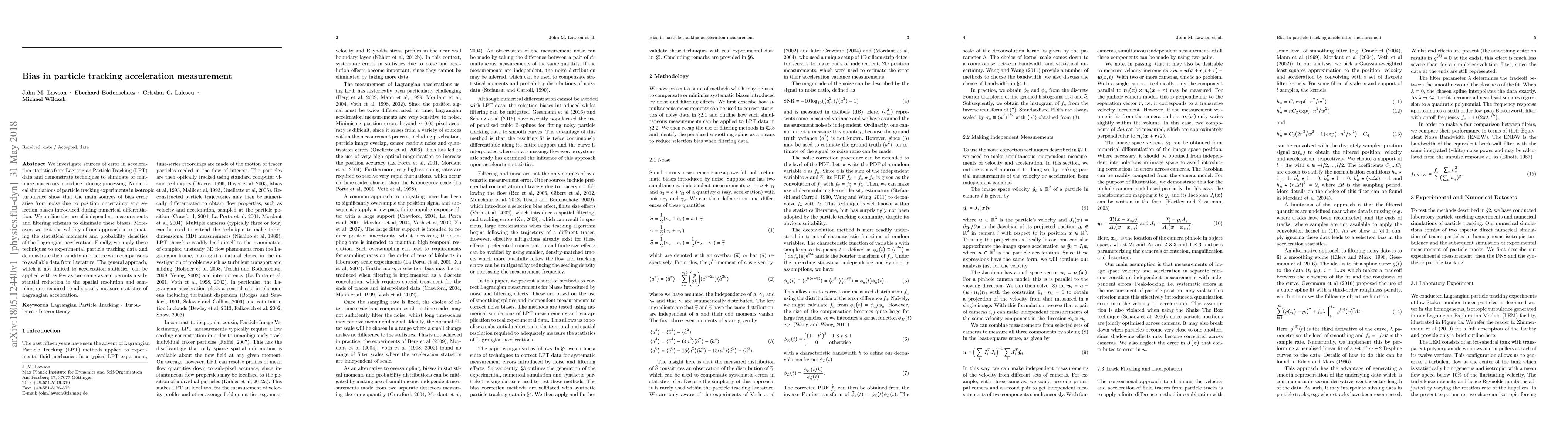 We investigate sources of error in acceleration statistics from Lagrangian Particle Tracking (LPT) data and demonstrate techniques to eliminate or minimise bias errors introduced during processing. Numerical simulations of particle tracking experiments in isotropic turbulence show that the main sources of bias error arise from noise due to position uncertainty and selection biases introduced during numerical differentiation. We outline the use of independent measurements and filtering schemes to eliminate these biases. Moreover, we test the validity of our approach in estimating the statistical moments and probability densities of the Lagrangian acceleration. Finally, we apply these techniques to experimental particle tracking data and demonstrate their validity in practice with comparisons to available data from literature. The general approach, which is not limited to acceleration statistics, can be applied with as few as two cameras and permits a substantial reduction in the spatial resolution and sampling rate required to adequately measure statistics of Lagrangian acceleration.