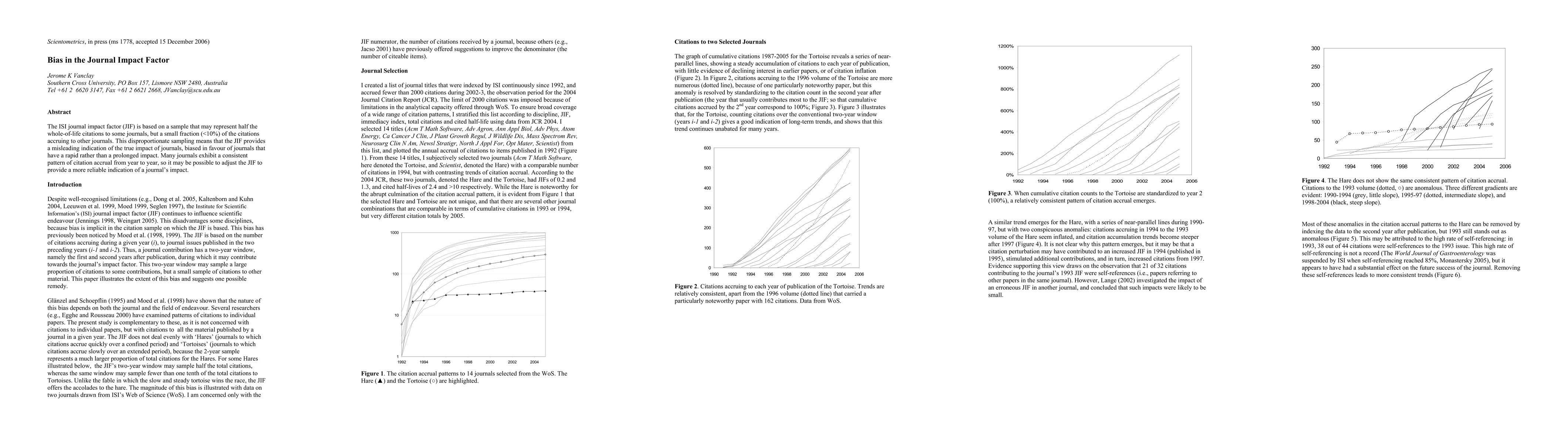 The ISI journal impact factor (JIF) is based on a sample that may represent half the whole-of-life citations to some journals, but a small fraction (<10%) of the citations accruing to other journals. This disproportionate sampling means that the JIF provides a misleading indication of the true impact of journals, biased in favour of journals that have a rapid rather than a prolonged impact. Many journals exhibit a consistent pattern of citation accrual from year to year, so it may be possible to adjust the JIF to provide a more reliable indication of a journal's impact.