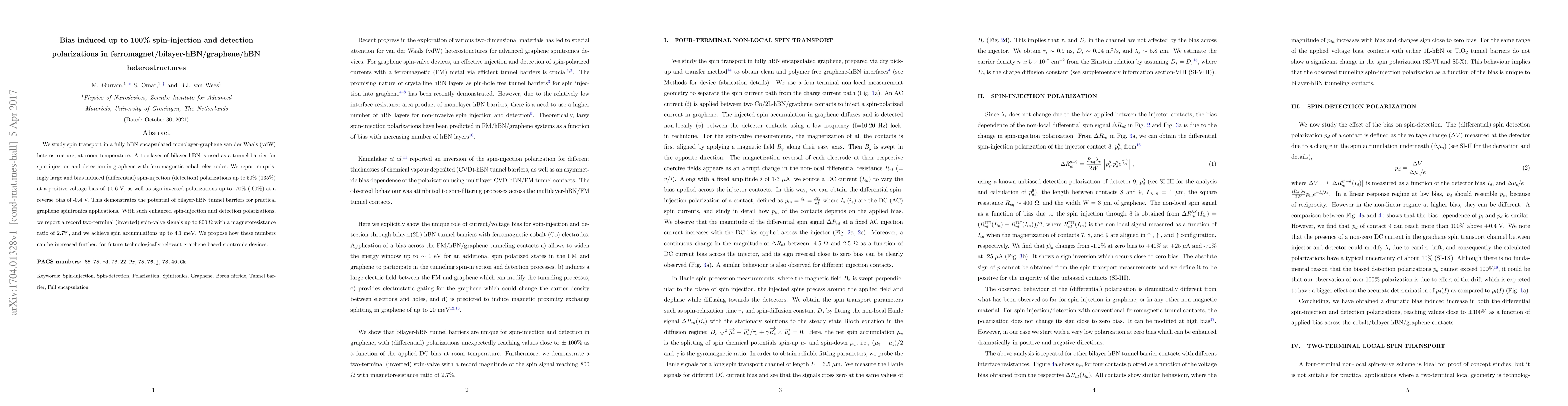 This study investigates spin transport in hBN-encapsulated graphene heterostructures, revealing significant bias-induced spin-injection and detection polarizations up to 135% and -60%, respectively. The results demonstrate substantial potential for graphene-based spintronics and suggest ways to further enhance performance for future devices.