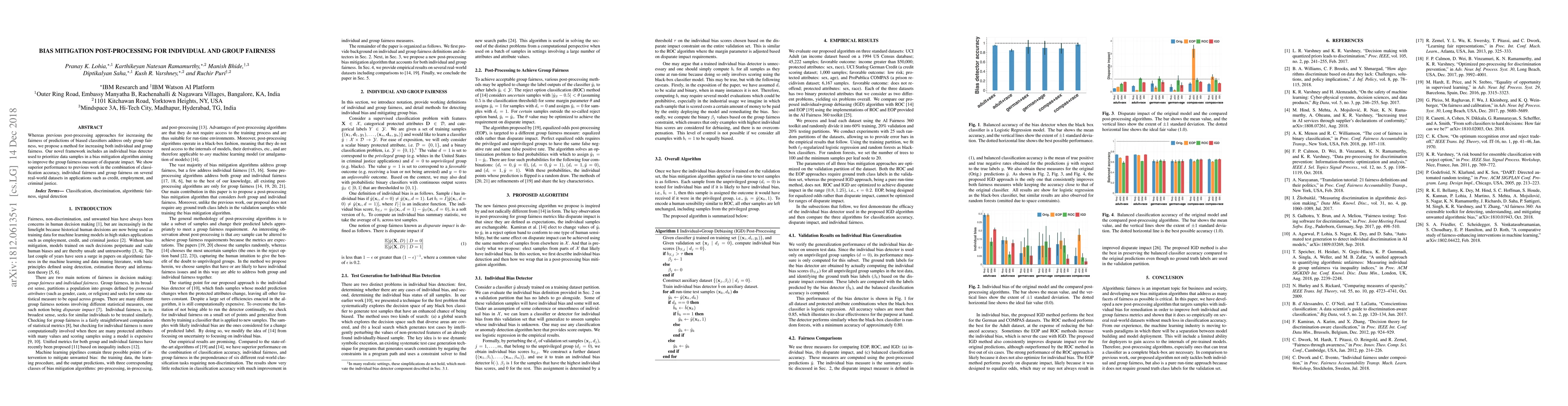 Whereas previous post-processing approaches for increasing the fairness of predictions of biased classifiers address only group fairness, we propose a method for increasing both individual and group fairness. Our novel framework includes an individual bias detector used to prioritize data samples in a bias mitigation algorithm aiming to improve the group fairness measure of disparate impact. We show superior performance to previous work in the combination of classification accuracy, individual fairness and group fairness on several real-world datasets in applications such as credit, employment, and criminal justice.