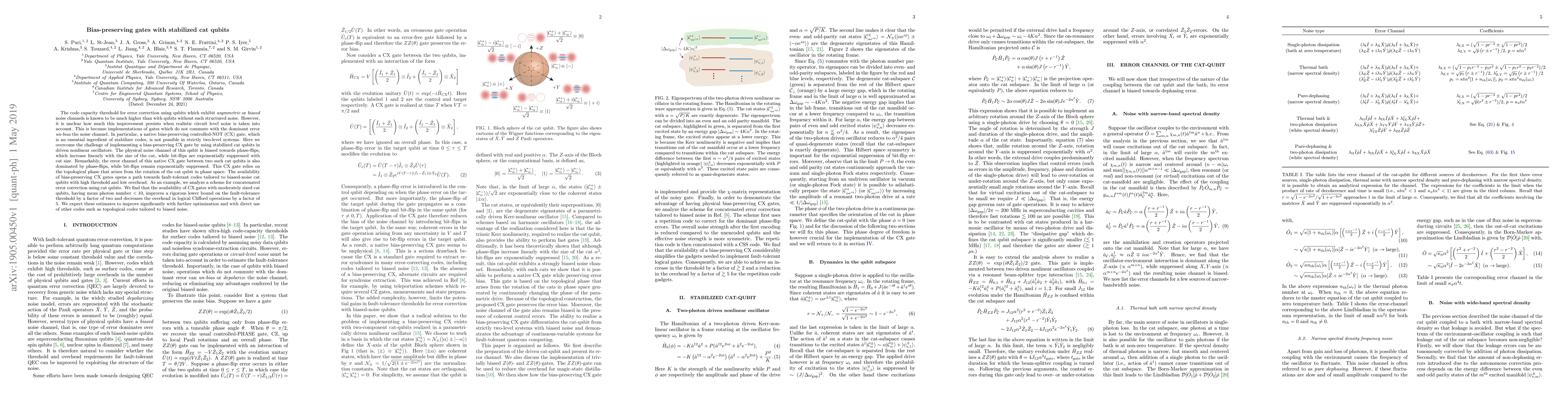 The code capacity threshold for error correction using qubits which exhibit asymmetric or biased noise channels is known to be much higher than with qubits without such structured noise. However, it is unclear how much this improvement persists when realistic circuit level noise is taken into account. This is because implementations of gates which do not commute with the dominant error un-bias the noise channel. In particular, a native bias-preserving controlled-NOT (CX) gate, which is an essential ingredient of stabilizer codes, is not possible in strictly two-level systems. Here we overcome the challenge of implementing a bias-preserving CX gate by using stabilized cat qubits in driven nonlinear oscillators. The physical noise channel of this qubit is biased towards phase-flips, which increase linearly with the size of the cat, while bit-flips are exponentially suppressed with cat size. Remarkably, the error channel of this native CX gate between two such cat qubits is also dominated by phase-flips, while bit-flips remain exponentially suppressed. This CX gate relies on the topological phase that arises from the rotation of the cat qubit in phase space. The availability of bias-preserving CX gates opens a path towards fault-tolerant codes tailored to biased-noise cat qubits with high threshold and low overhead. As an example, we analyze a scheme for concatenated error correction using cat qubits. We find that the availability of CX gates with moderately sized cat qubits, having mean photon number <10, improves a rigorous lower bound on the fault-tolerance threshold by a factor of two and decreases the overhead in logical Clifford operations by a factor of 5. We expect these estimates to improve significantly with further optimization and with direct use of other codes such as topological codes tailored to biased noise.