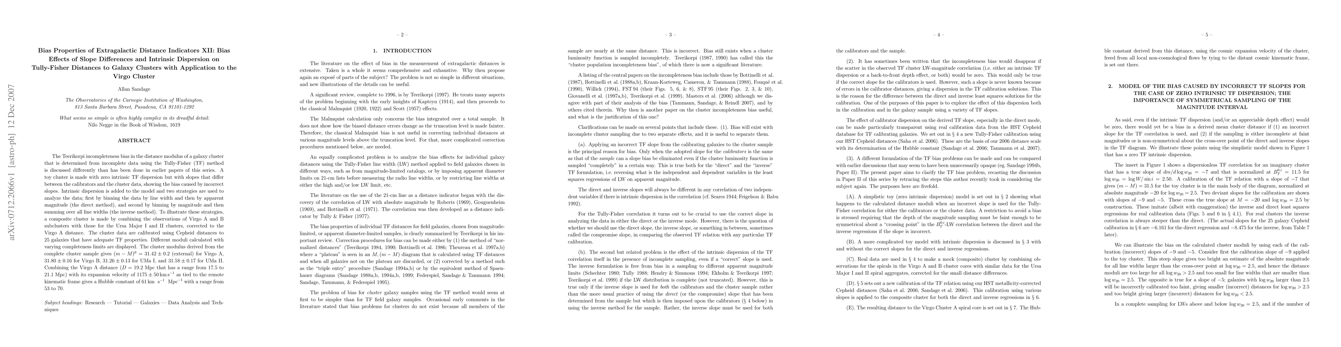 The Teerikorpi incompleteness bias in the distance modulus of a galaxy cluster that is determined from incomplete data using the Tully-Fisher (TF) method is discussed differently than has been done in earlier papers of this series. A toy cluster is made with zero intrinsic TF dispersion but with slopes that differ between the calibrators and the cluster data, showing the bias caused by incorrect slopes. Intrinsic dispersion is added to the model and two strategies are used to analyze the data; first by binning the data by line width and then by apparent magnitude (the direct method), and second by binning by magnitude and then summing over all line widths (the inverse method). To illustrate these strategies, a composite cluster is made by combining the observations of Virgo A and B subclusters with those for the Ursa Major I and II clusters, corrected to the Virgo A distance. The cluster data are calibrated using Cepheid distances to 25 galaxies that have adequate TF properties. Different moduli calculated with varying completeness limits are displayed. The cluster modulus derived from the complete cluster sample gives (m-M) = 31.42 +/- 0.2 (external) for Virgo A, 31.80 +/- 0.16 for Virgo B, 31.26 +/- 0.13 for UMa I, and 31.58 +/- 0.17 for UMa II. Combining the Virgo A distance (D = 19.2 Mpc that has a range from 17.5 to 21.1 Mpc with its expansion velocity of 1175 +/- 50 km/s as tied to the remote kinematic frame gives a Hubble constant of 61km/s/Mpc with a range from 53 to 70.