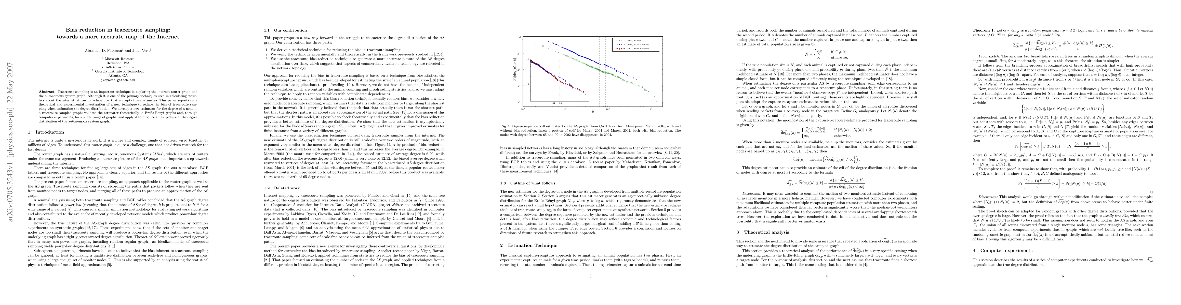 This paper proposes a new method to reduce bias in traceroute sampling for estimating the degree distribution of the internet's autonomous system graph. The authors develop and validate a new estimator, demonstrating its effectiveness through theoretical and experimental analysis.