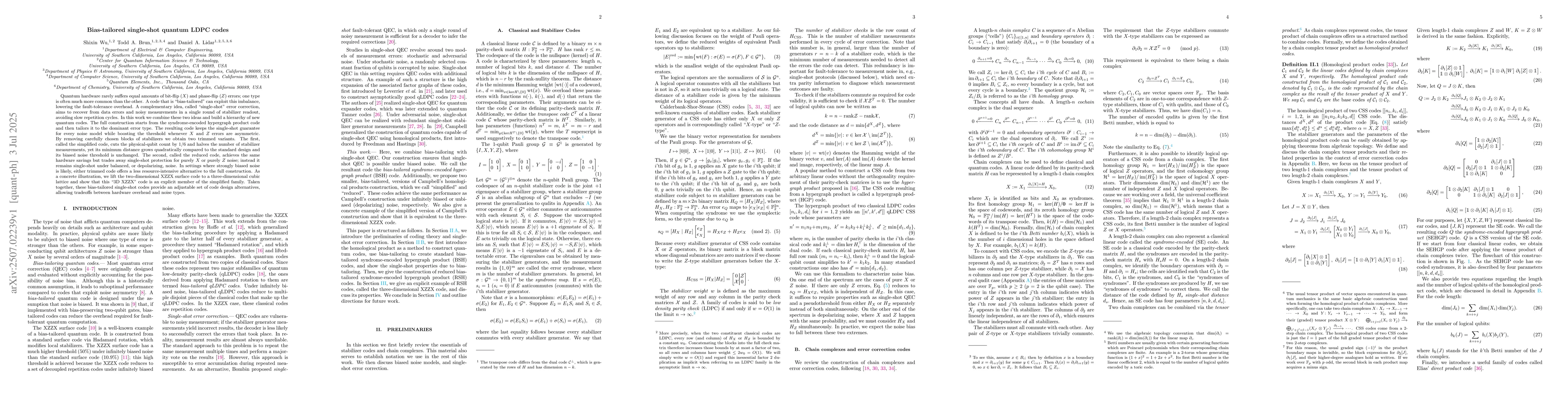 This research introduces bias-tailored single-shot quantum LDPC codes, combining the benefits of exploiting error type imbalance and single-round error correction. It presents a hierarchy of new codes, derived from syndrome-encoded hypergraph product codes, which reduce hardware overhead while maintaining or enhancing thresholds for biased noise. Two trimmed variants, simplified and reduced codes, offer further optimizations with trade-offs in distance, measurements, and noise type protection, exemplified by a 3D XZZX surface code variant.