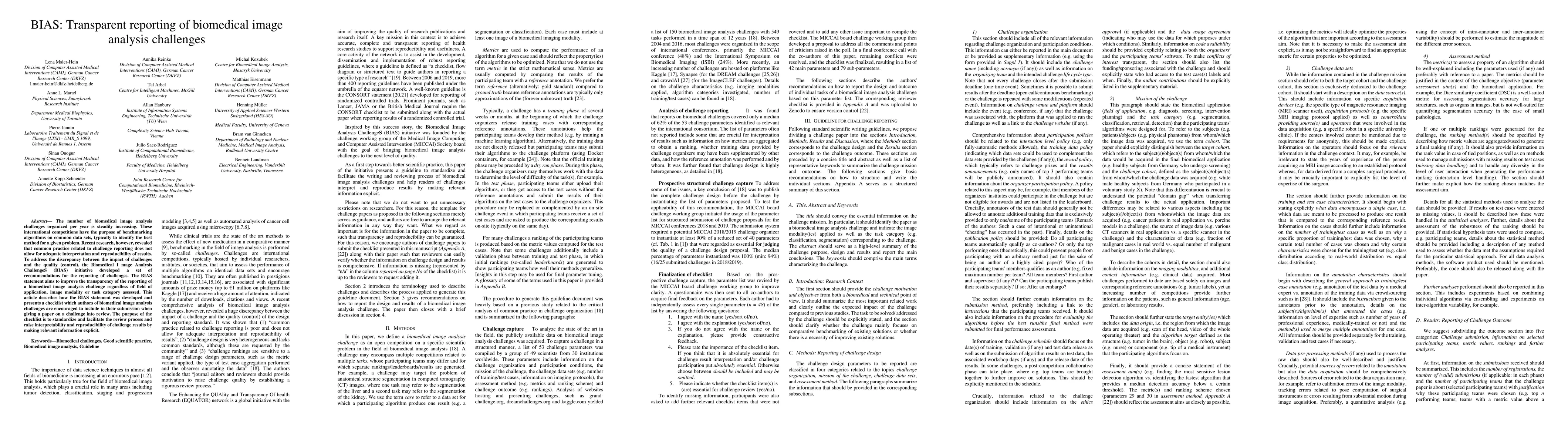 The BIAS initiative proposes a set of recommendations to enhance the transparency and reproducibility of biomedical image analysis challenges. The BIAS statement aims to standardize reporting practices, providing a checklist to improve the interpretability and review process of challenge results.