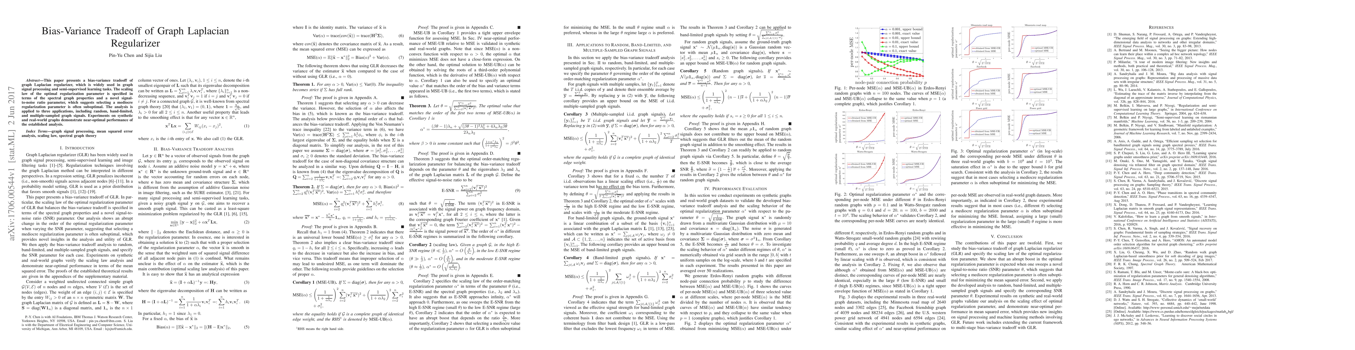 This paper presents a bias-variance tradeoff of graph Laplacian regularizer, which is widely used in graph signal processing and semi-supervised learning tasks. The scaling law of the optimal regularization parameter is specified in terms of the spectral graph properties and a novel signal-to-noise ratio parameter, which suggests selecting a mediocre regularization parameter is often suboptimal. The analysis is applied to three applications, including random, band-limited, and multiple-sampled graph signals. Experiments on synthetic and real-world graphs demonstrate near-optimal performance of the established analysis.