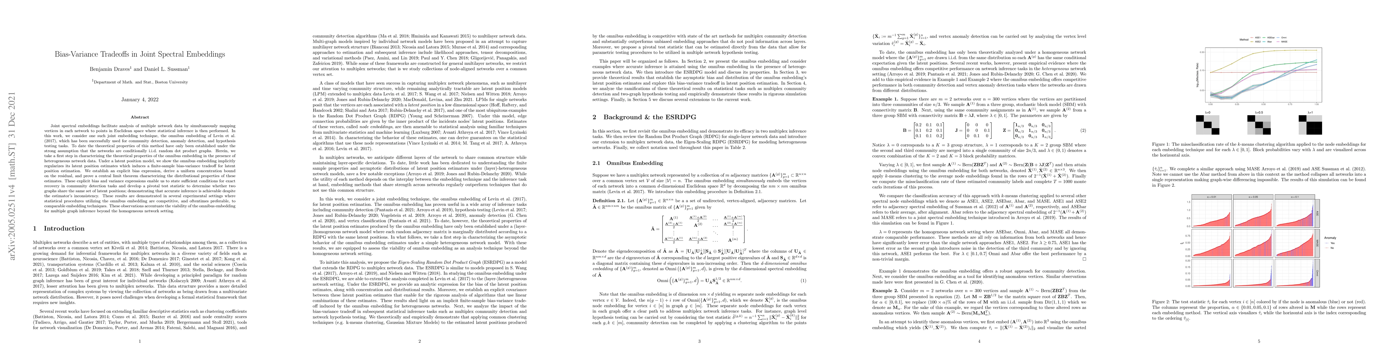 This paper investigates the theoretical properties of the omnibus embedding technique for joint spectral embeddings, focusing on its performance with heterogeneous network data. It reveals an implicit regularization effect leading to a bias-variance tradeoff, providing explicit expressions for bias and variance, and establishing conditions for exact recovery in community detection tasks. Experimental results show competitive performance of the omnibus embedding over other techniques.