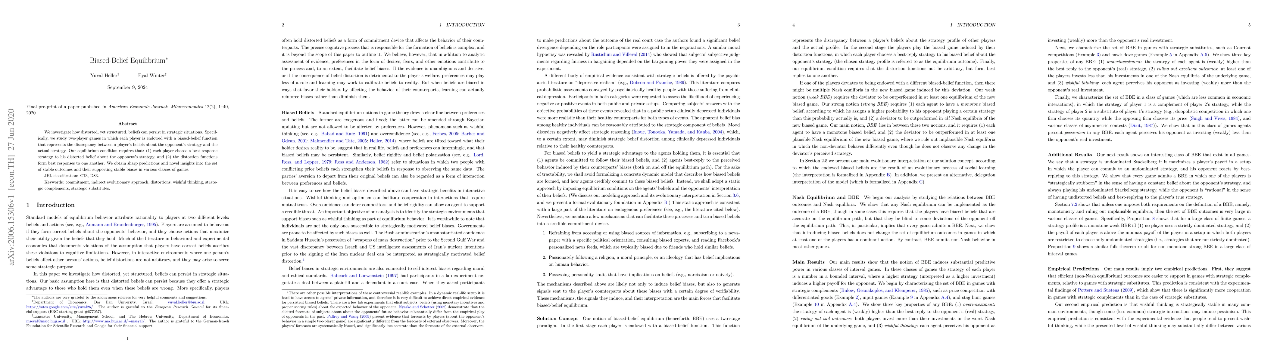 This paper explores how structured, biased beliefs can sustain equilibrium in two-player games, where each player's strategy is a best response to their distorted view of the opponent's strategy. The study reveals stable outcomes and insights into the nature of these biases across different game types.