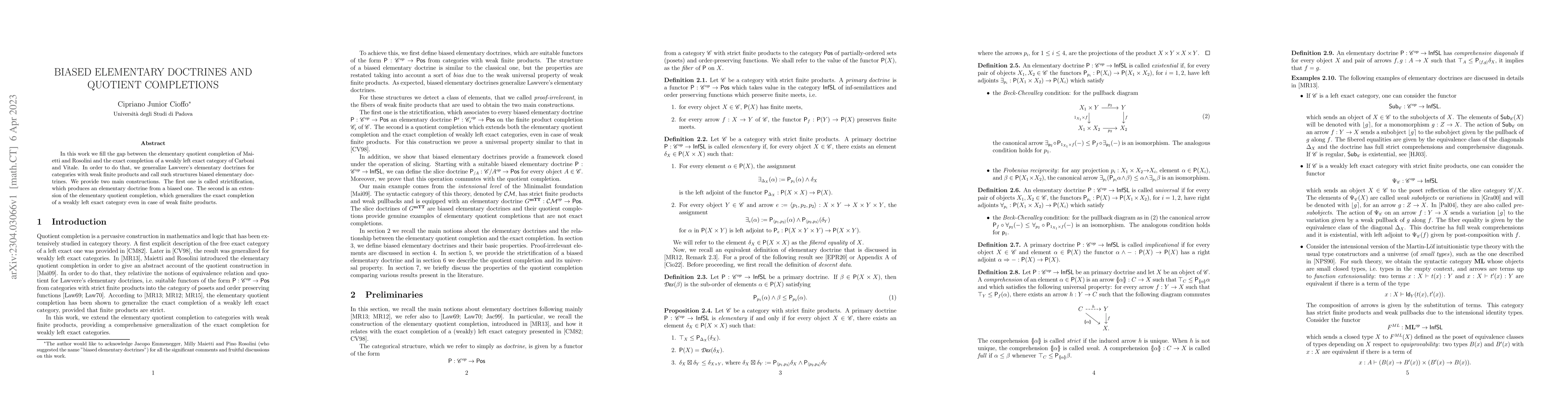 In this work we fill the gap between the elementary quotient completion of Maietti and Rosolini and the exact completion of a weakly left exact category of Carboni and Vitale. In order to do that, we generalize Lawvere's elementary doctrines for categories with weak finite products and call such structures biased elementary doctrines. We provide two main constructions. The first one is called strictification, which produces an elementary doctrine from a biased one. The second is an extension of the elementary quotient completion, which generalizes the exact completion of a weakly left exact category even in case of weak finite products.