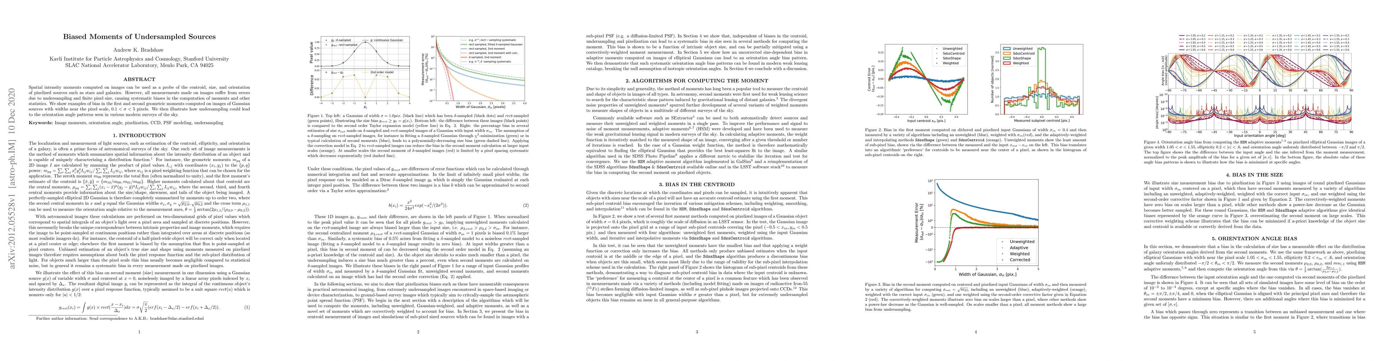 Spatial intensity moments computed on images can be used as a probe of the centroid, size, and orientation of pixelized sources such as stars and galaxies. However, all measurements made on images suffer from errors due to undersampling and finite pixel size, causing systematic biases in the computation of moments and other statistics. We show examples of bias in the first and second geometric moments computed on images of Gaussian sources with widths near the pixel scale, $0.1<\sigma<5$ pixels. We then illustrate how undersampling could lead to the orientation angle patterns seen in various modern surveys of the sky.