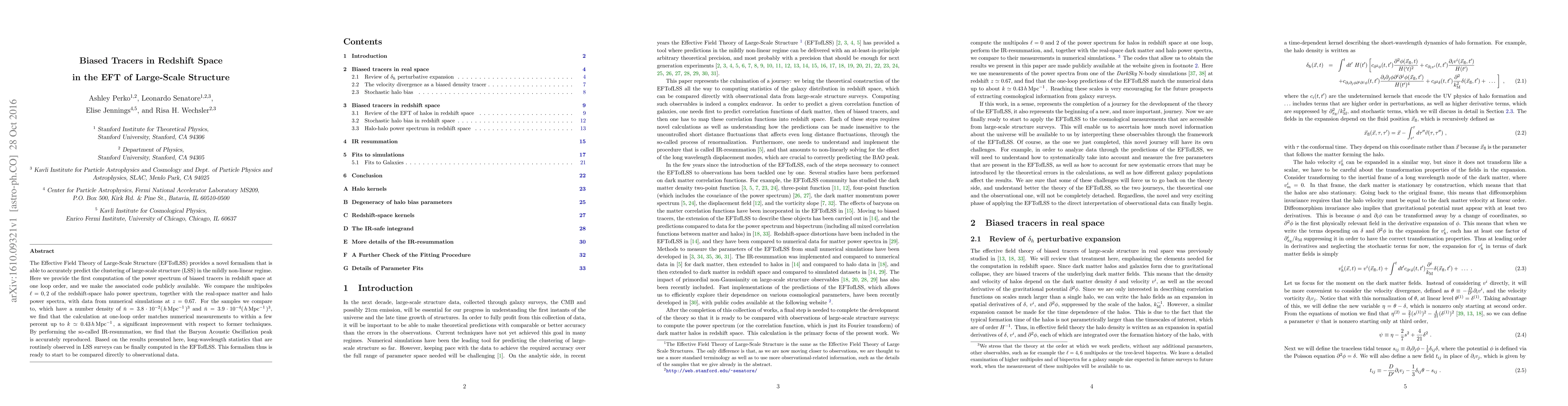 The Effective Field Theory of Large-Scale Structure (EFTofLSS) provides a novel formalism that is able to accurately predict the clustering of large-scale structure (LSS) in the mildly non-linear regime. Here we provide the first computation of the power spectrum of biased tracers in redshift space at one loop order, and we make the associated code publicly available. We compare the multipoles $\ell=0,2$ of the redshift-space halo power spectrum, together with the real-space matter and halo power spectra, with data from numerical simulations at $z=0.67$. For the samples we compare to, which have a number density of $\bar n=3.8 \cdot 10^{-2}(h \ {\rm Mpc}^{-1})^3$ and $\bar n=3.9 \cdot 10^{-4}(h \ {\rm Mpc}^{-1})^3$, we find that the calculation at one-loop order matches numerical measurements to within a few percent up to $k\simeq 0.43 \ h \ {\rm Mpc}^{-1}$, a significant improvement with respect to former techniques. By performing the so-called IR-resummation, we find that the Baryon Acoustic Oscillation peak is accurately reproduced. Based on the results presented here, long-wavelength statistics that are routinely observed in LSS surveys can be finally computed in the EFTofLSS. This formalism thus is ready to start to be compared directly to observational data.