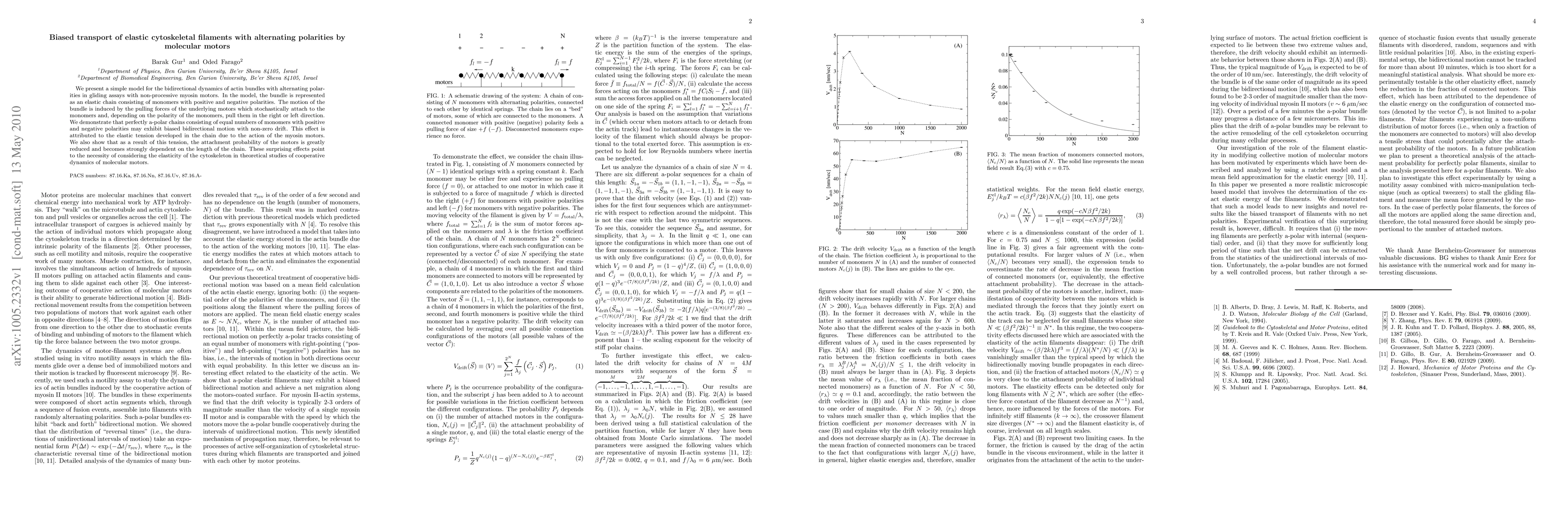We present a simple model for the bidirectional dynamics of actin bundles with alternating polarities in gliding assays with non-processive myosin motors. In the model, the bundle is represented as an elastic chain consisting of monomers with positive and negative polarities. The motion of the bundle is induced by the pulling forces of the underlying motors which stochastically attach to the monomers and, depending on the polarity of the monomers, pull them in the right or left direction. We demonstrate that perfectly a-polar chains consisting of equal numbers of monomers with positive and negative polarities may exhibit biased bidirectional motion with non-zero drift. This effect is attributed to the elastic tension developed in the chain due to the action of the myosin motors. We also show that as a result of this tension, the attachment probability of the motors is greatly reduced and becomes strongly dependent on the length of the chain. These surprising effects point to the necessity of considering the elasticity of the cytoskeleton in theoretical studies of cooperative dynamics of molecular motors.
