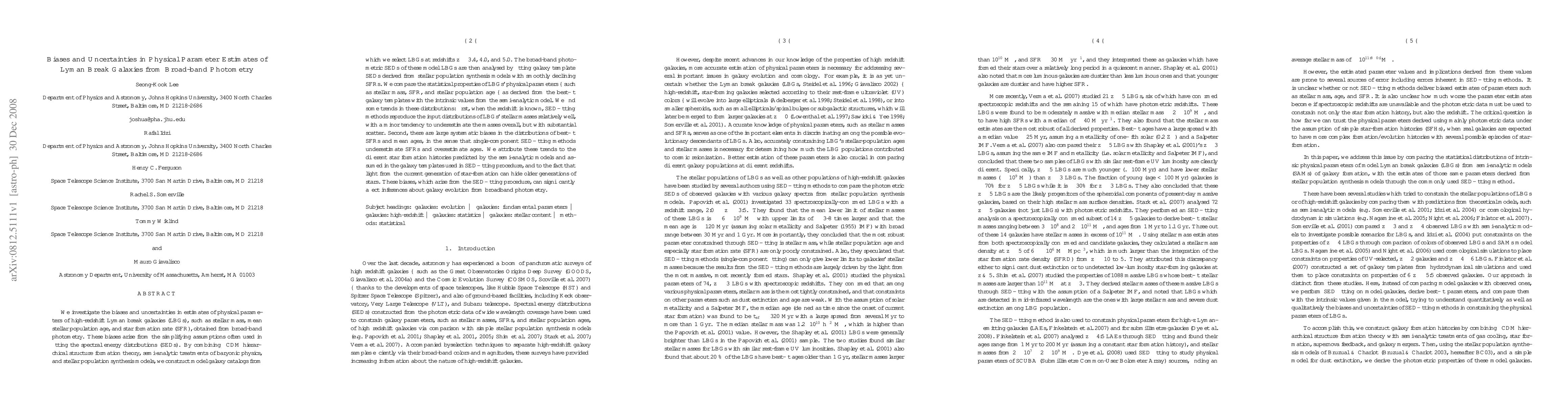 This paper examines biases and uncertainties in estimating physical parameters of high-redshift Lyman break galaxies (LBGs) from broad-band photometry, finding that while stellar mass estimates are relatively accurate, there are significant systematic biases in star formation rate and mean stellar population age estimates due to differences in star formation histories and the SED-fitting method.