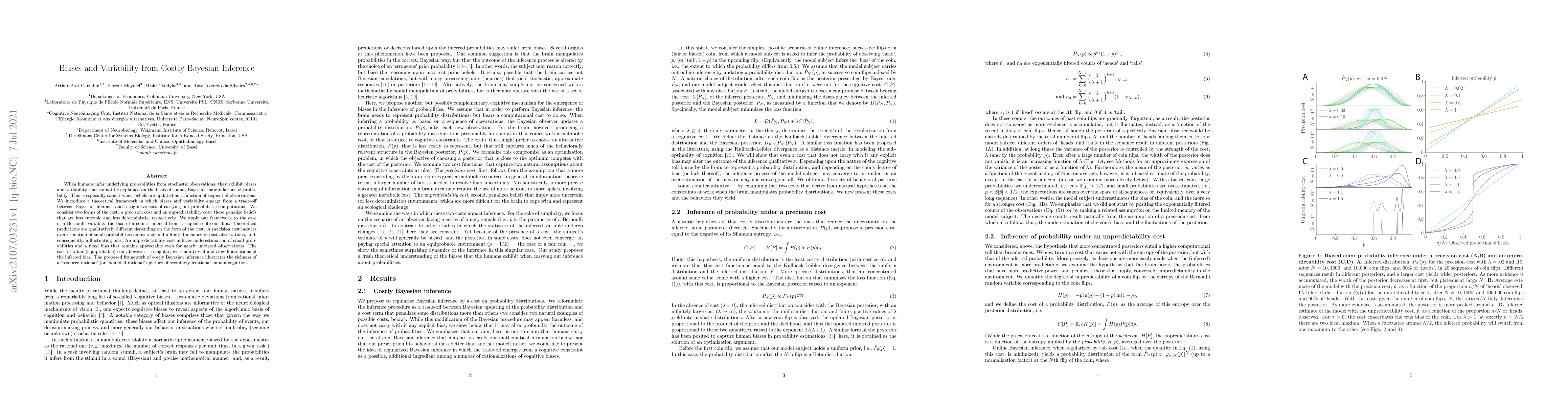 When humans infer underlying probabilities from stochastic observations, they exhibit biases and variability that cannot be explained on the basis of sound, Bayesian manipulations of probability. This is especially salient when beliefs are updated as a function of sequential observations. We introduce a theoretical framework in which biases and variability emerge from a trade-off between Bayesian inference and a cognitive cost of carrying out probabilistic computations. We consider two forms of the cost: a precision cost and an unpredictability cost; these penalize beliefs that are less entropic and less deterministic, respectively. We apply our framework to the case of a Bernoulli variable: the bias of a coin is inferred from a sequence of coin flips. Theoretical predictions are qualitatively different depending on the form of the cost. A precision cost induces overestimation of small probabilities on average and a limited memory of past observations, and, consequently, a fluctuating bias. An unpredictability cost induces underestimation of small probabilities and a fixed bias that remains appreciable even for nearly unbiased observations. The case of a fair (equiprobable) coin, however, is singular, with non-trivial and slow fluctuations of the inferred bias. The proposed framework of costly Bayesian inference illustrates the richness of a 'resource-rational' (or 'bounded-rational') picture of seemingly irrational human cognition.