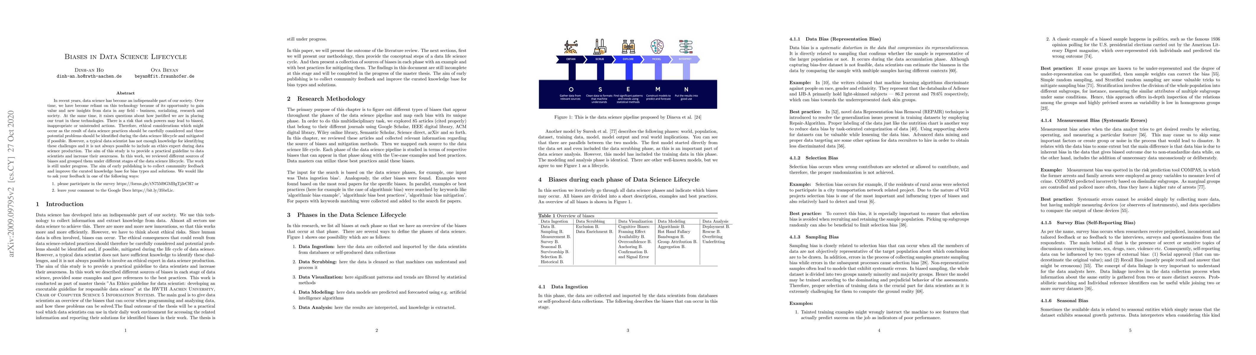 This paper explores biases in the data science lifecycle, emphasizing the need for ethical considerations to mitigate potential issues. It provides a practical guideline for data scientists to identify and address biases at various stages, aiming to increase awareness and gather community feedback for continuous improvement.