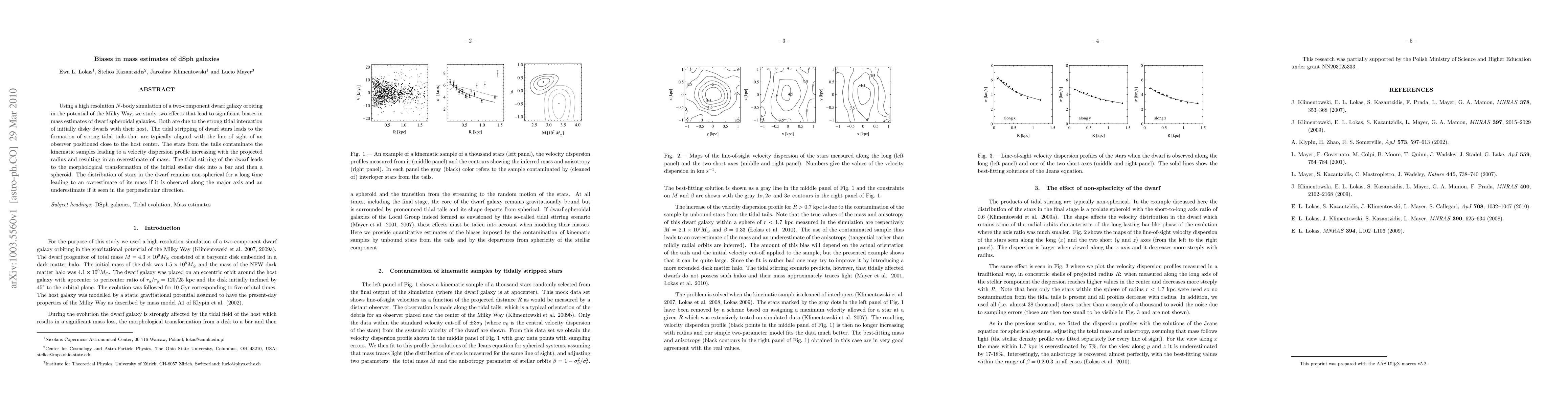 Studies in a high-resolution simulation reveal biases in mass estimates of dwarf spheroidal galaxies due to tidal interactions with the Milky Way, leading to overestimation of mass when observed along major axis.