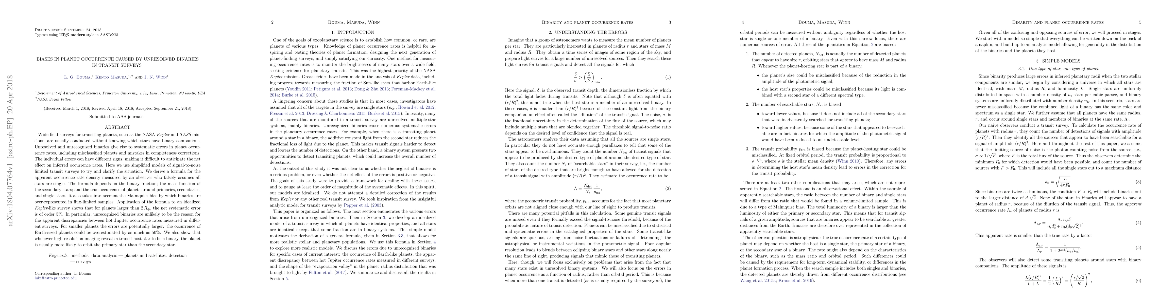 This paper investigates the biases in planet occurrence rates caused by unresolved binary stars in transit surveys like Kepler and TESS. It finds that unrecognized binaries can lead to systematic errors, with the net effect on occurrence rates depending on factors like binary fraction and mass function. For planets larger than 2 $R_\oplus$, the error is around 5%, while for smaller planets, like Earth-sized, the occurrence could be overestimated by up to 50%.
