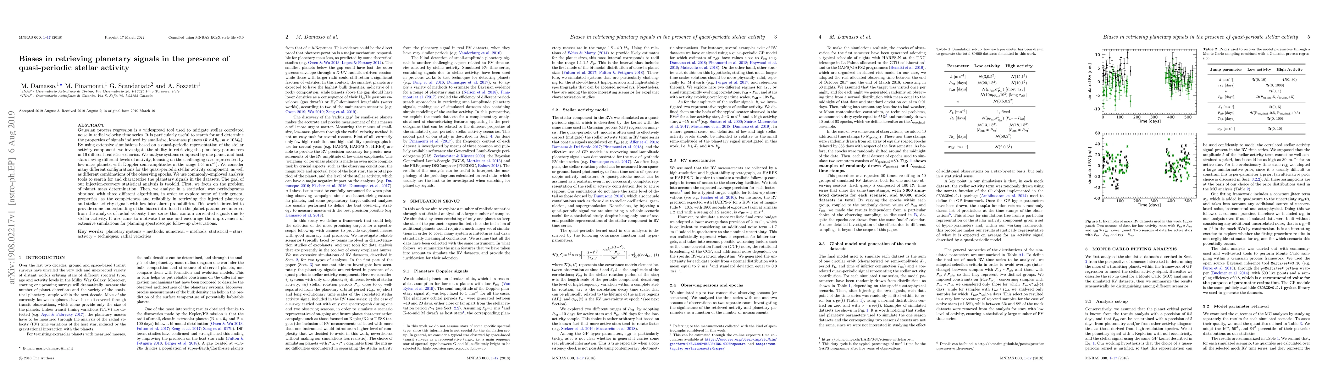 This paper investigates biases in retrieving planetary signals from radial velocity time series in the presence of quasi-periodic stellar activity using Gaussian process regression. It conducts extensive simulations to analyze the ability to determine parameters for low-mass planets, focusing on the challenges of mass determination and the reliability of periodograms in various scenarios.