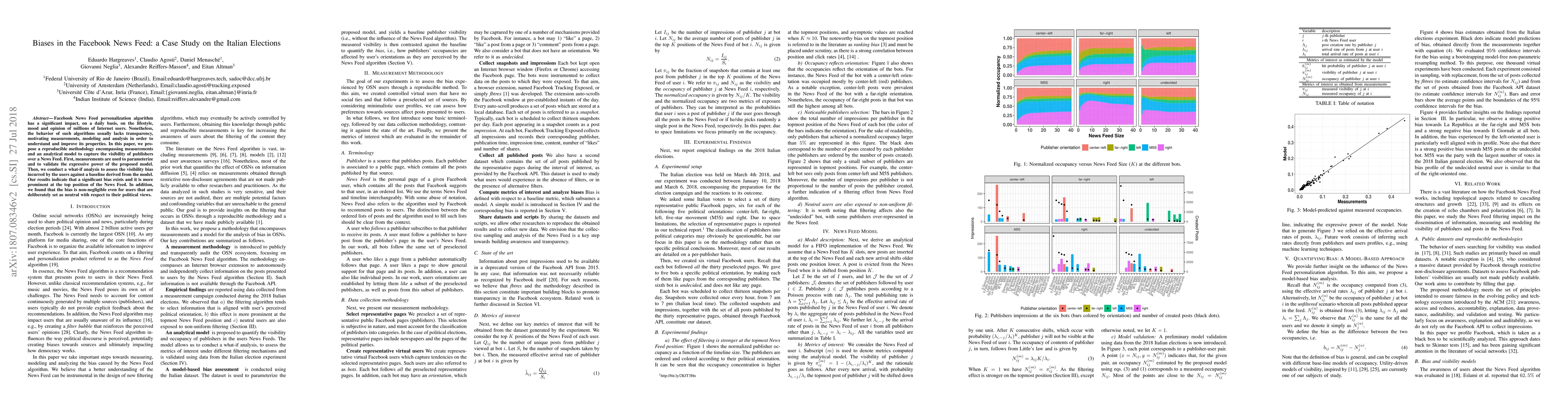A study on Facebook News Feed personalization found a significant bias towards publishers, particularly at top positions, even among neutral users. The research proposes a methodology to capture and analyze this bias.