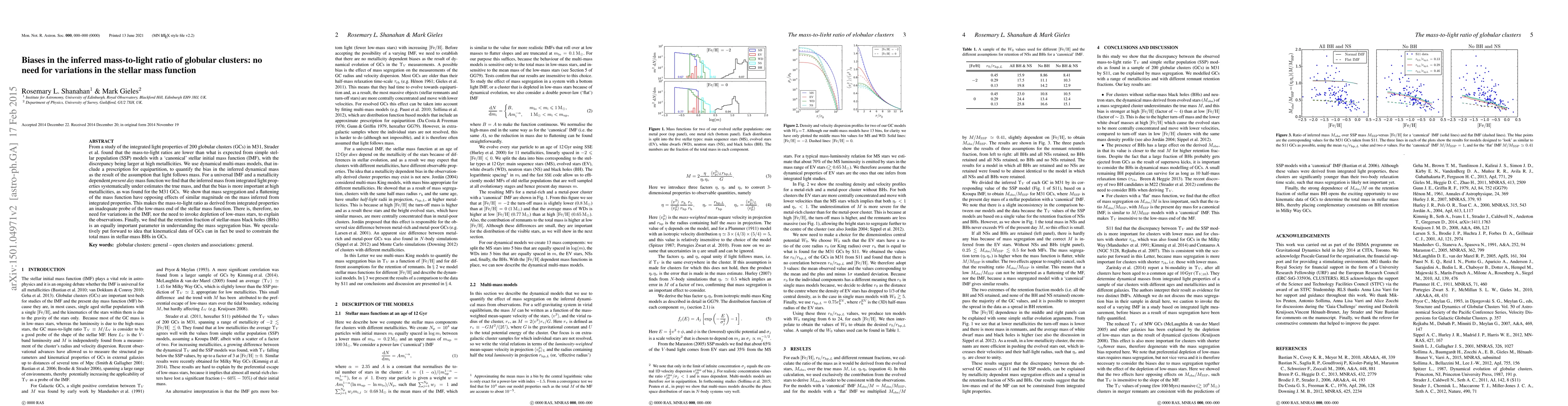 From a study of the integrated light properties of 200 globular clusters (GCs) in M31, Strader et al. found that the mass-to-light ratios are lower than what is expected from simple stellar population (SSP) models with a `canonical' stellar initial mass function (IMF), with the discrepancy being larger at high metallicities. We use dynamical multi-mass models, that include a prescription for equipartition, to quantify the bias in the inferred dynamical mass as the result of the assumption that light follows mass. For a universal IMF and a metallicity dependent present day mass function we find that the inferred mass from integrated light properties systematically under estimates the true mass, and that the bias is more important at high metallicities, as was found for the M31 GCs. We show that mass segregation and a flattening of the mass function have opposing effects of similar magnitude on the mass inferred from integrated properties. This makes the mass-to-light ratio as derived from integrated properties an inadequate probe of the low-mass end of the stellar mass function. There is, therefore, no need for variations in the IMF, nor the need to invoke depletion of low-mass stars, to explain the observations. Finally, we find that the retention fraction of stellar-mass black holes (BHs) is an equally important parameter in understanding the mass segregation bias. We speculatively put forward to idea that kinematical data of GCs can in fact be used to constrain the total mass in stellar-mass BHs in GCs.
