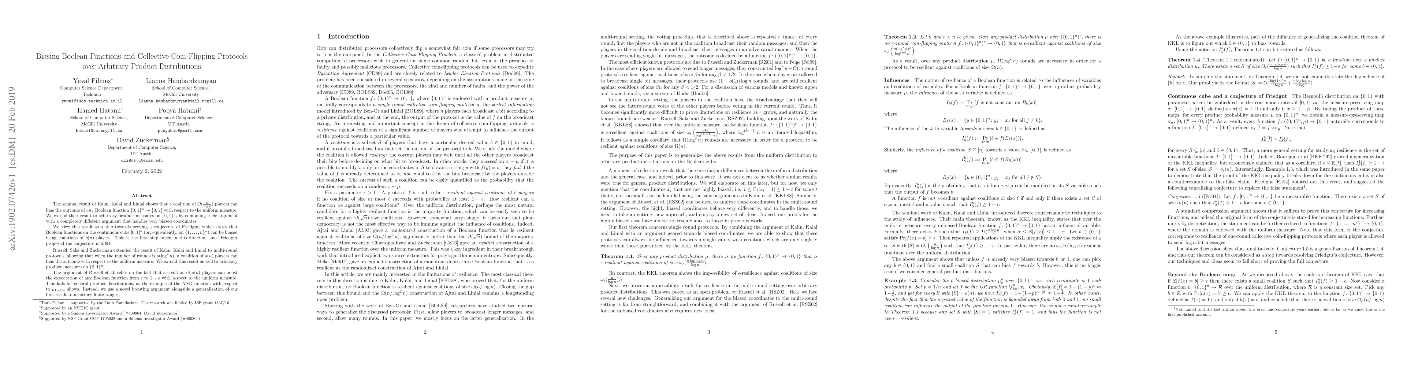 Researchers extend a seminal result to arbitrary product distributions, showing that a coalition of $O(rac{n}{ ext{log n}})$ players can bias the outcome of any Boolean function with respect to an arbitrary measure.