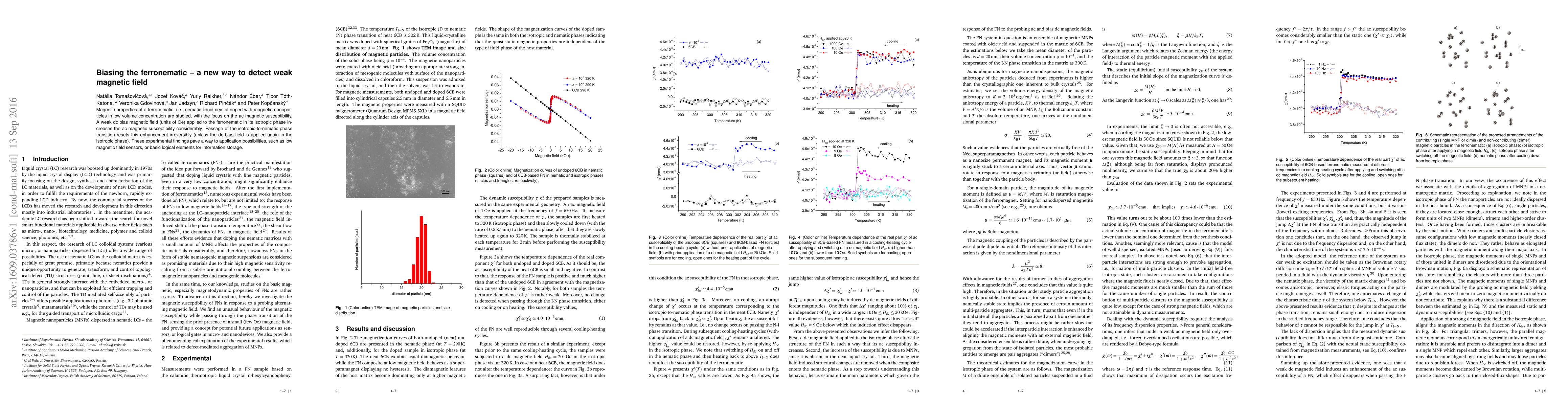 Magnetic properties of a ferronematic, i.e., nematic liquid crystal doped with magnetic nanoparticles in low volume concentration are studied, with the focus on the ac magnetic susceptibility. A weak dc bias magnetic field (units of Oe) applied to the ferronematic in its isotropic phase increases the ac magnetic susceptibility considerably. Passage of the isotropic-to-nematic phase transition resets this enhancement irreversibly (unless the dc bias field is applied again in the isotropic phase). These experimental findings pave a way to application possibilities, such as low magnetic field sensors, or basic logical elements for information storage.