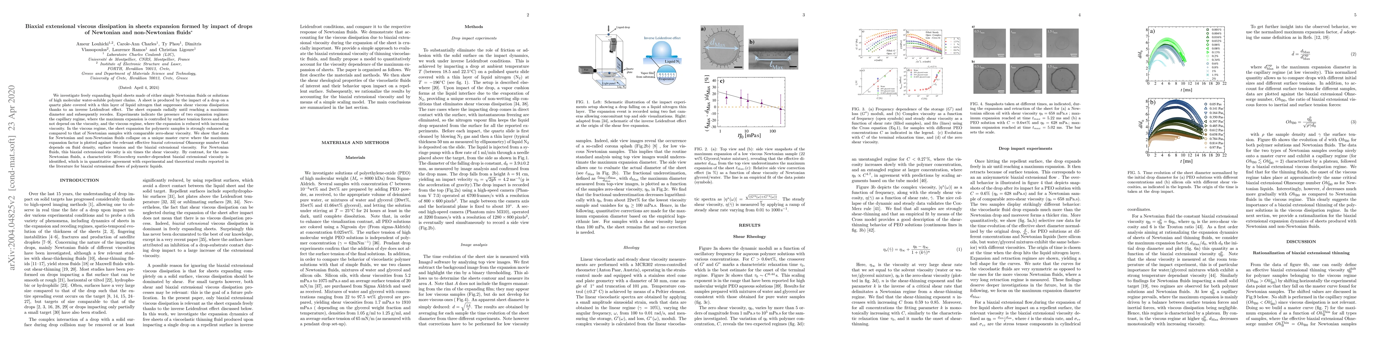 This paper investigates the biaxial extensional viscous dissipation in expanding liquid sheets formed by the impact of Newtonian and non-Newtonian fluids. It finds two expansion regimes: a capillary regime unaffected by viscosity and a viscous regime where non-Newtonian fluids show enhanced expansion compared to Newtonian ones, collapsing data onto a master curve based on an effective Ohnesorge number.