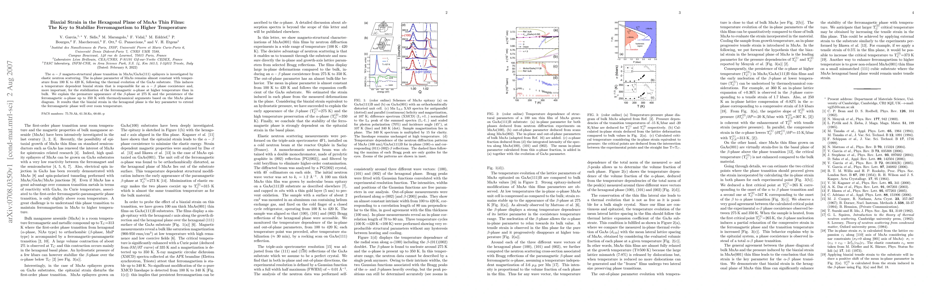 The alpha-beta magneto-structural phase transition in MnAs/GaAs(111) epilayers is investigated by elastic neutron scattering. The in-plane parameter of MnAs remains almost constant with temperature from 100 K to 420 K, following the thermal evolution of the GaAs substrate. This induces a temperature dependent biaxial strain that is responsible for an alpha-beta phase coexistence and, more important, for the stabilization of the ferromagnetic alpha-phase at higher temperature than in bulk. We explain the premature appearance of the beta-phase at 275 K and the persistence of the ferromagnetic alpha-phase up to 350 K with thermodynamical arguments based on the MnAs phase diagram. It results that the biaxial strain in the hexagonal plane is the key parameter to extend the ferromagnetic phase well over room temperature.