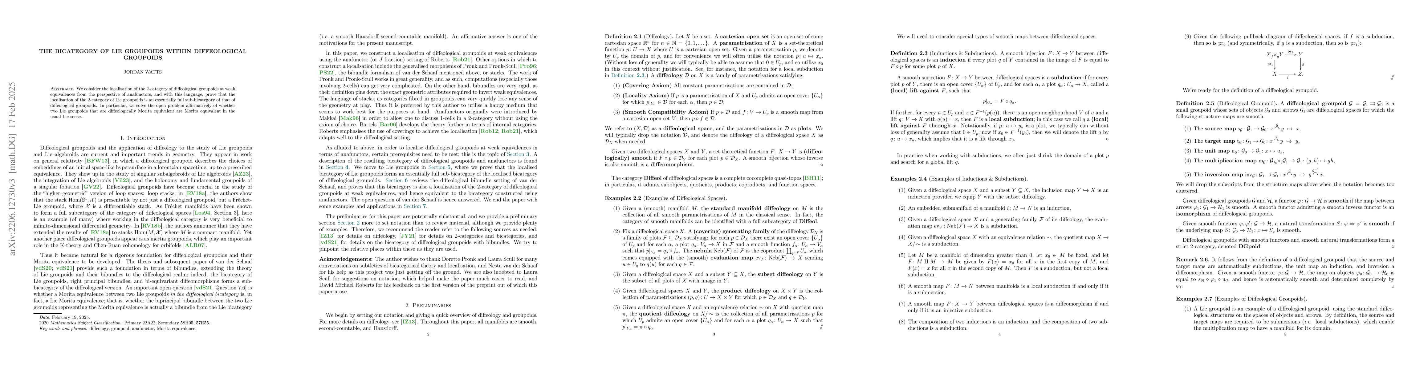 This paper investigates three equivalent bicategories of diffeological groupoids, showing equivalences between them via generalised morphisms, anafunctors, and bibundles. It also demonstrates the essential fullness of sub-bicategories of locally subductive diffeological groupoids and Lie groupoids, and provides applications linking these structures to geometric stacks and Morita invariants.