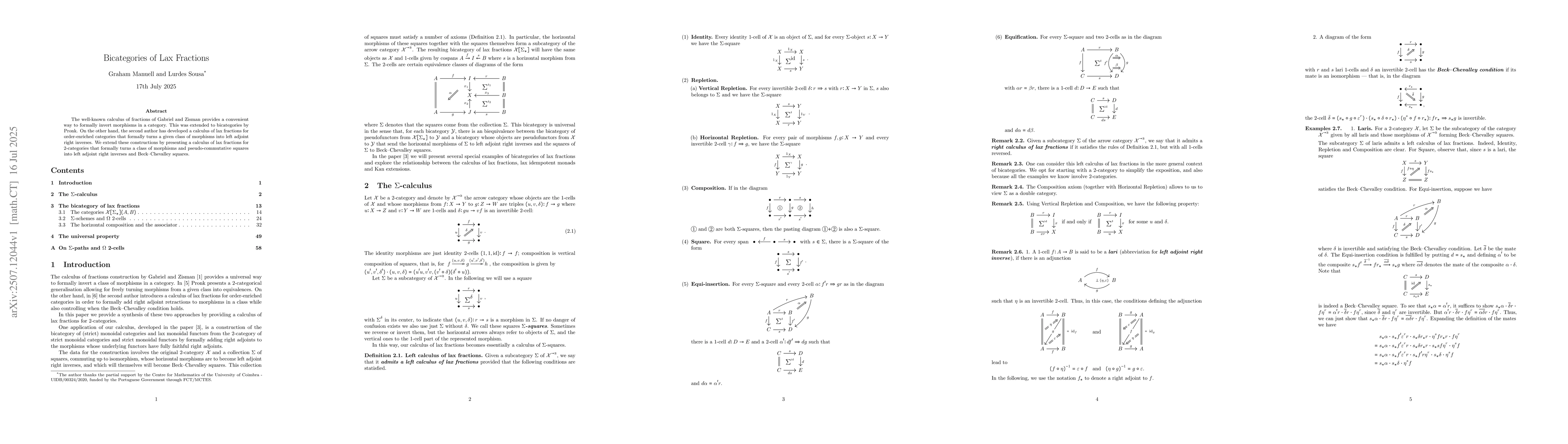 The well-known calculus of fractions of Gabriel and Zisman provides a convenient way to formally invert morphisms in a category. This was extended to bicategories by Pronk. On the other hand, the second author has developed a calculus of lax fractions for order-enriched categories that formally turns a given class of morphisms into left adjoint right inverses. We extend these constructions by presenting a calculus of lax fractions for 2-categories that formally turns a class of morphisms and pseudo-commutative squares into left adjoint right inverses and Beck-Chevalley squares.
