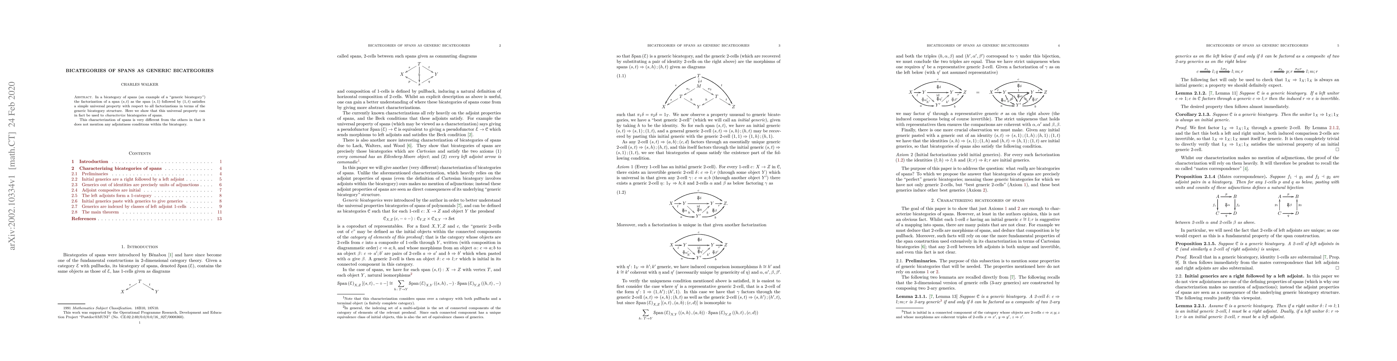 In a bicategory of spans (an example of a 'generic bicategory') the factorization of a span (s,t) as the span (s,1) followed by (1,t) satisfies a simple universal property with respect to all factorizations in terms of the generic bicategory structure. Here we show that this universal property can in fact be used to characterize bicategories of spans. This characterization of spans is very different from the others in that it does not mention any adjointness conditions within the bicategory.