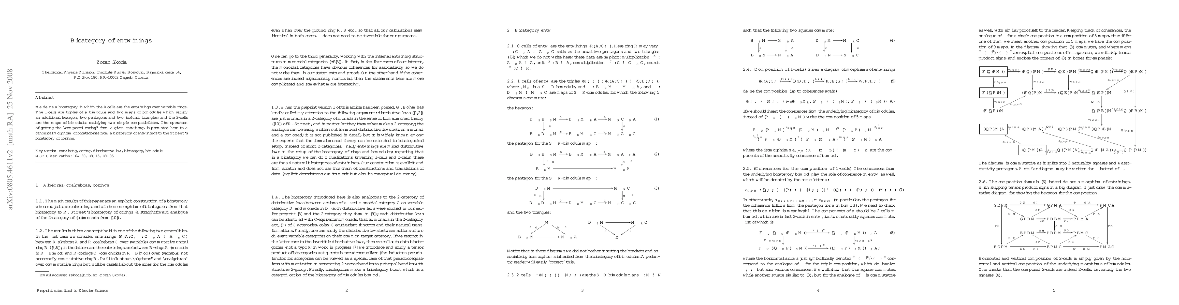 We define a bicategory in which the 0-cells are the entwinings over variable rings. The 1-cells are triples of a bimodule and two maps of bimodules which satisfy an additional hexagon, two pentagons and two (co)unit triangles; and the 2-cells are the maps of bimodules satisfying two simple compatibilities. The operation of getting the "composed coring" from a given entwining, is promoted here to a canonical morphism of bicategories from a bicategory of entwinings to the Street's bicategory of corings.
