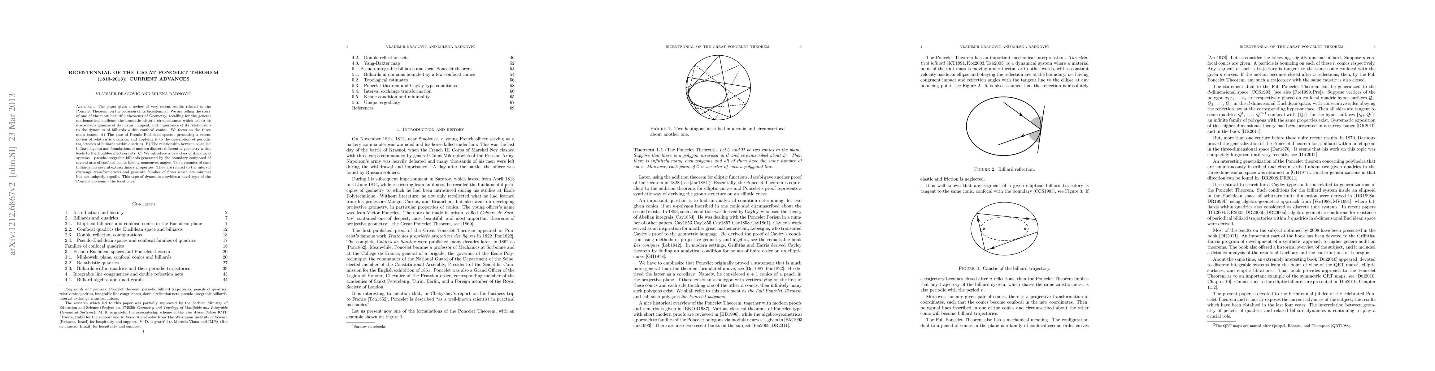 The paper gives a review of very recent results related to the Poncelet Theorem, on the occasion of its bicentennial. We are telling the story of one of the most beautiful theorems of Geometry, recalling for the general mathematical audience the dramatic historic circumstances which led to its discovery, a glimpse of its intrinsic appeal, and importance of its relationship to the dynamics of billiards within confocal conics. We focus on the three main issues: A) The case of Pseudo-Euclidean spaces, presenting a recent notion of relativistic quadrics, and applying it to the description of periodic trajectories of billiards within quadrics. B) The relationship between so-called billiard algebra and foundations of modern discrete differential geometry which leads to the Double-reflection nets. C) We introduce a new class of dynamical systems -- pseudo-integrable billiards generated by the boundary composed of several arcs of confocal conics having nonconvex angles. The dynamics of such billiards has several extraordinary properties. They are related to the interval exchange transformations and generate families of flows which are minimal but not uniquely ergodic. This type of dynamics provides a novel type of the Poncelet porisms -- the local ones.