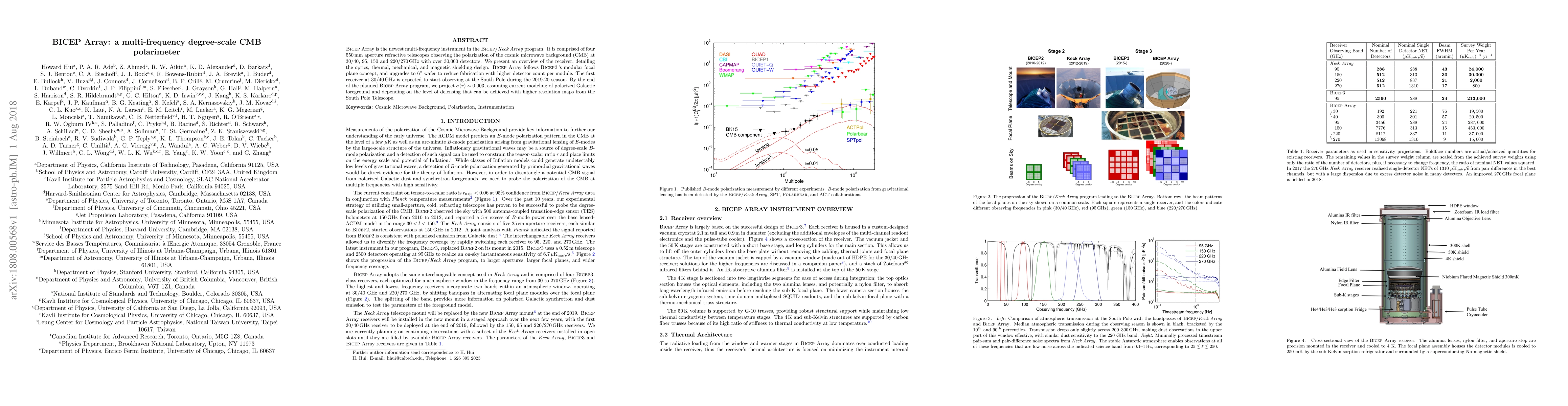 BICEP Array is a multi-frequency CMB polarimeter with four telescopes observing at 30/40, 95, 150, and 220/270 GHz, aiming for a sensitivity of $\sigma(r) \sim 0.003$ to detect B-mode polarization from inflationary gravitational waves.