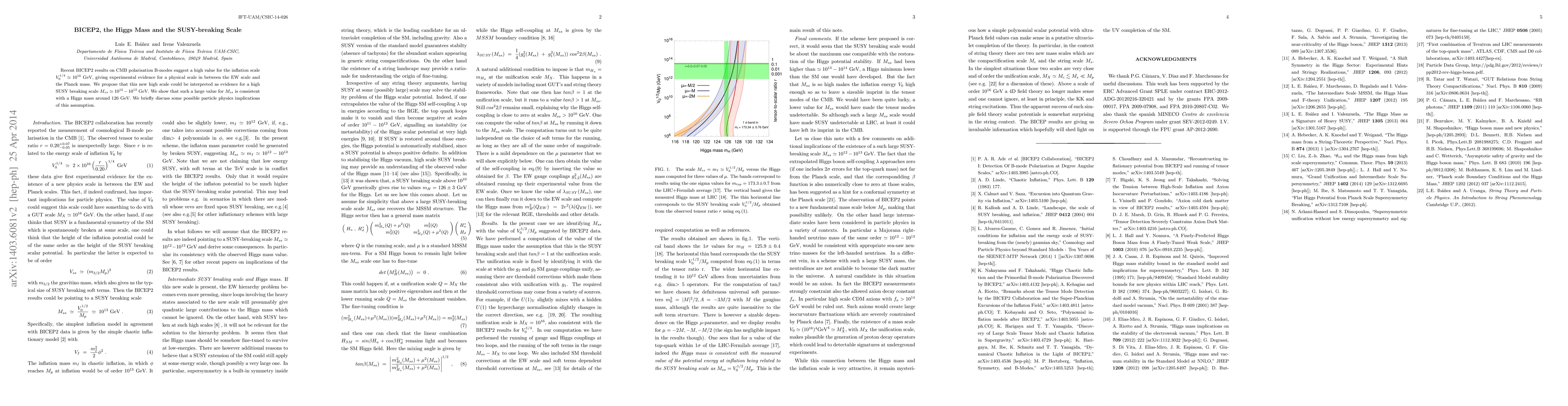 The BICEP2 results indicate a high inflation scale, suggesting a new physical scale between the EW and Planck scales. The paper proposes this scale as evidence for a high SUSY-breaking scale around $10^{12}-10^{13}$ GeV, consistent with the observed Higgs mass of 126 GeV.