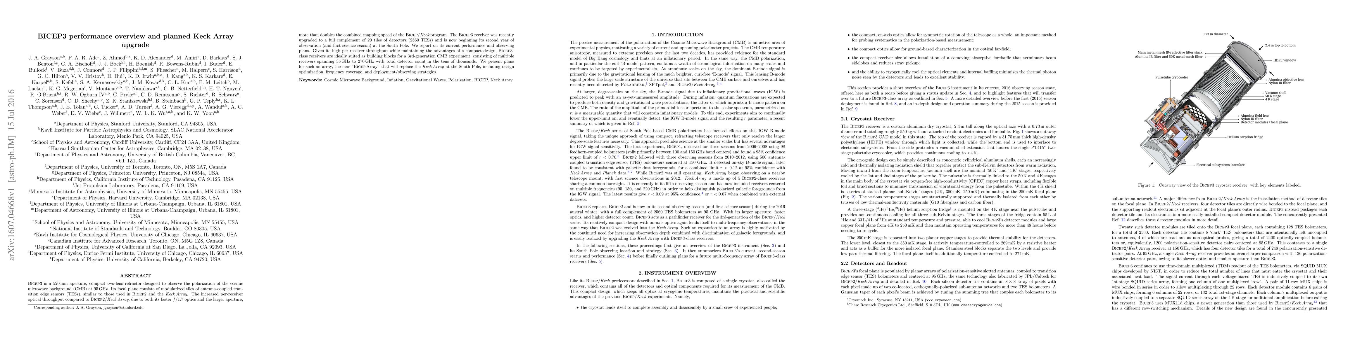 BICEP3, a high-throughput CMB polarization observatory, has doubled the mapping speed of its predecessors and is now in its second observing season. Plans are underway to upgrade to the "BICEP Array," a next-generation CMB experiment featuring multiple receivers across a broad frequency range.
