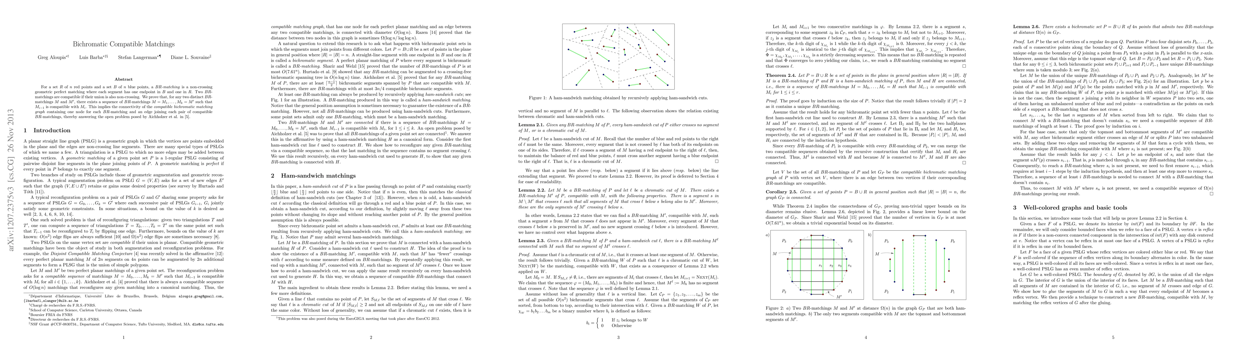 This paper proves the connectivity of the compatible bichromatic matching graph, showing that any two distinct bichromatic matchings can be transformed into each other through a sequence of compatible matchings, thus resolving an open problem regarding such matchings.