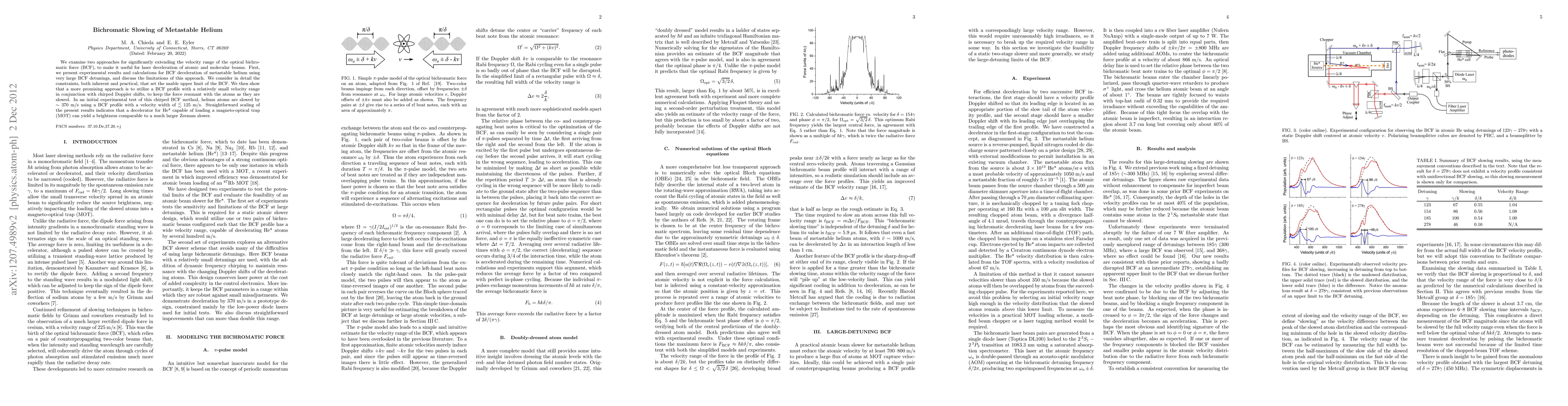 This paper explores methods to extend the optical bichromatic force's (BCF) velocity range for laser deceleration of atomic and molecular beams. It demonstrates that while large detunings can decelerate metastable helium, a more effective approach is using a small velocity range BCF combined with chirped Doppler shifts, successfully slowing helium atoms by 370 m/s.