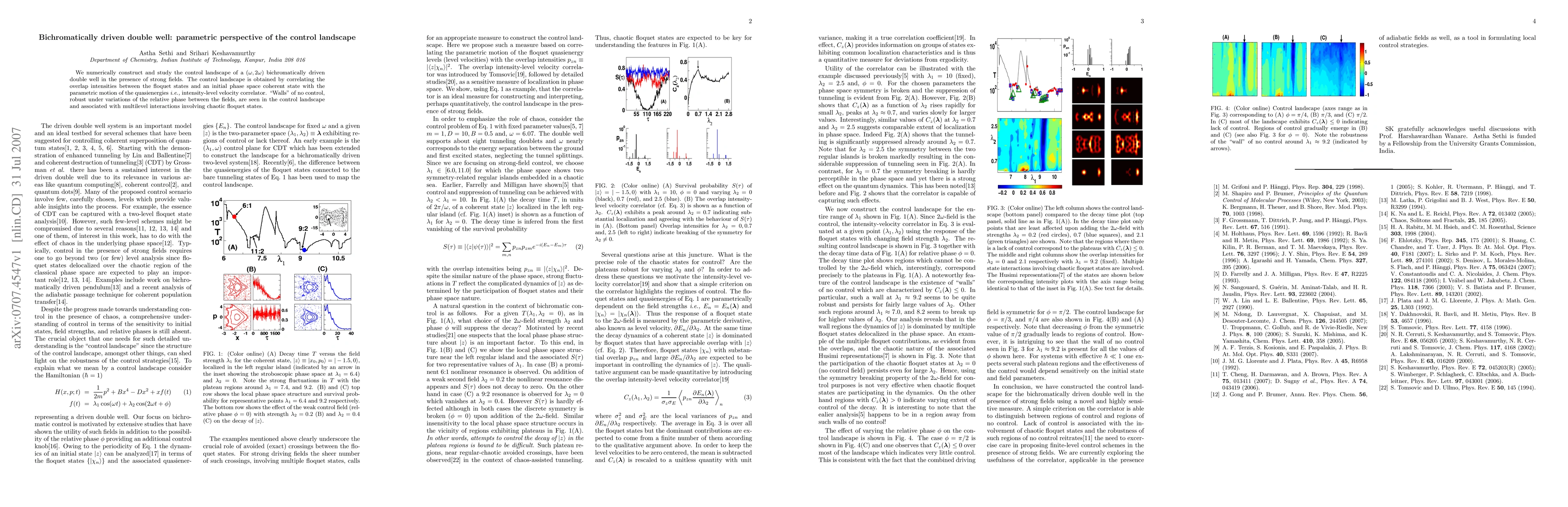 This paper numerically explores the control landscape of a bichromatically driven double well system under strong fields, revealing "walls" of no control linked to chaotic floquet states and multilevel interactions. The control landscape is characterized by correlating the overlap intensities between the floquet states and an initial phase space coherent state with the parametric motion of quasienergies.