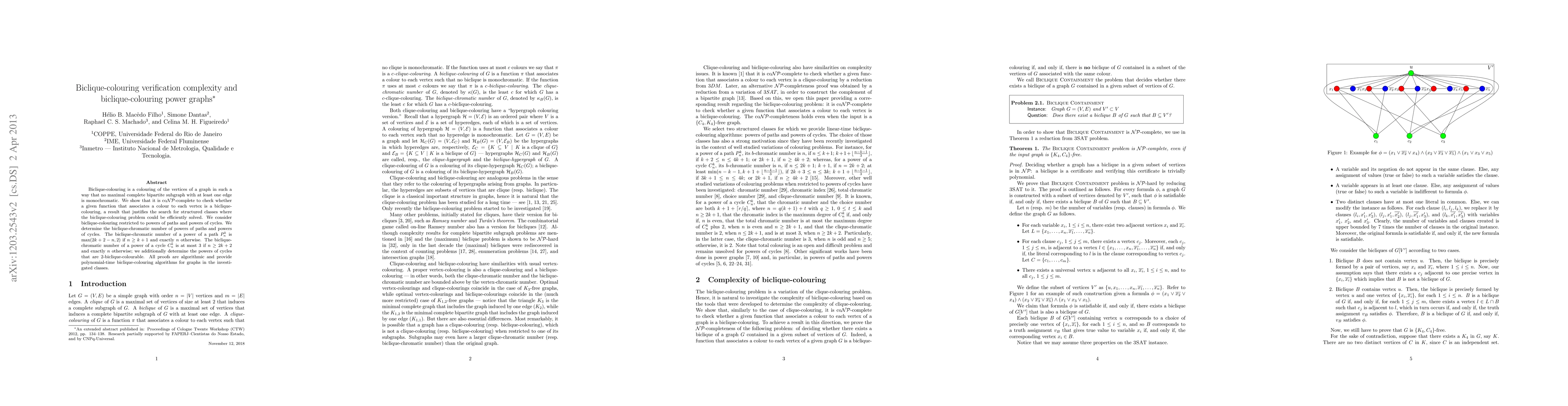 This paper investigates the complexity of verifying biclique-colourings in graphs and explores the biclique-chromatic numbers for powers of paths and cycles. It establishes that verifying biclique-colourings is coNP-complete and provides polynomial-time algorithms for specific structured graph classes.