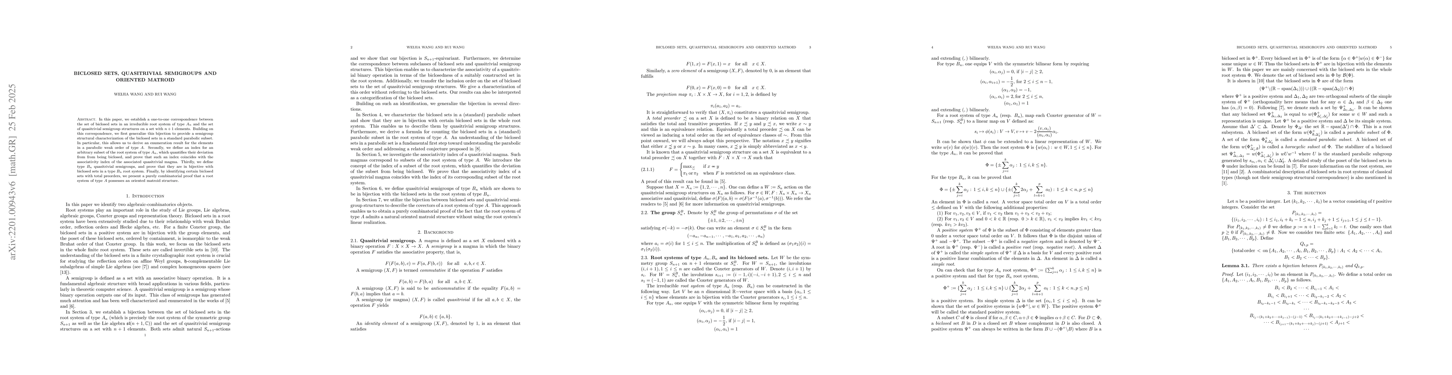 The paper introduces a novel method for associating biclosed sets in root systems with quasitrivial semigroup structures, providing a new combinatorial interpretation of these algebraic objects.