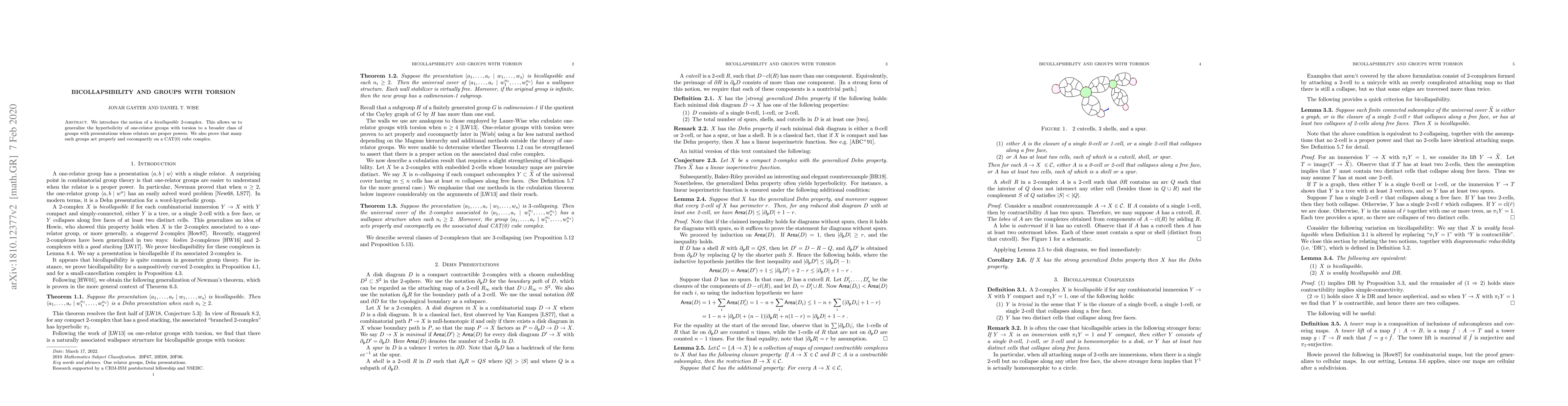 We introduce the notion of a bicollapsible 2-complex. This allows us to generalize the hyperbolicity of one-relator groups with torsion to a broader class of groups with presentations whose relators are proper powers. We also prove that many such groups act properly and cocompactly on a CAT(0) cube complex.