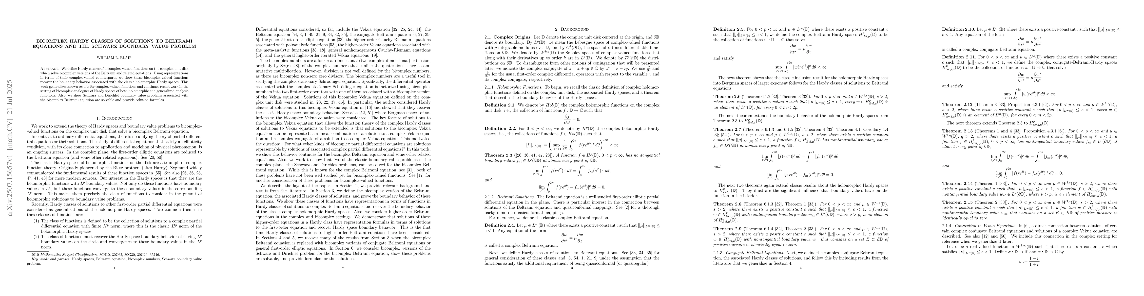 We define Hardy classes of bicomplex-valued functions on the complex unit disk which solve bicomplex versions of the Beltrami and related equations. Using representations in terms of their complex-valued counterparts, we show these bicomplex-valued functions recover the boundary behavior associated with the classic holomorphic Hardy spaces. This work generalizes known results for complex-valued functions and continues recent work in the setting of bicomplex analogues of Hardy spaces of both holomorphic and generalized analytic functions. Also, we show Schwarz and Dirichlet boundary value problems associated with the bicomplex Beltrami equation are solvable and provide solution formulas.