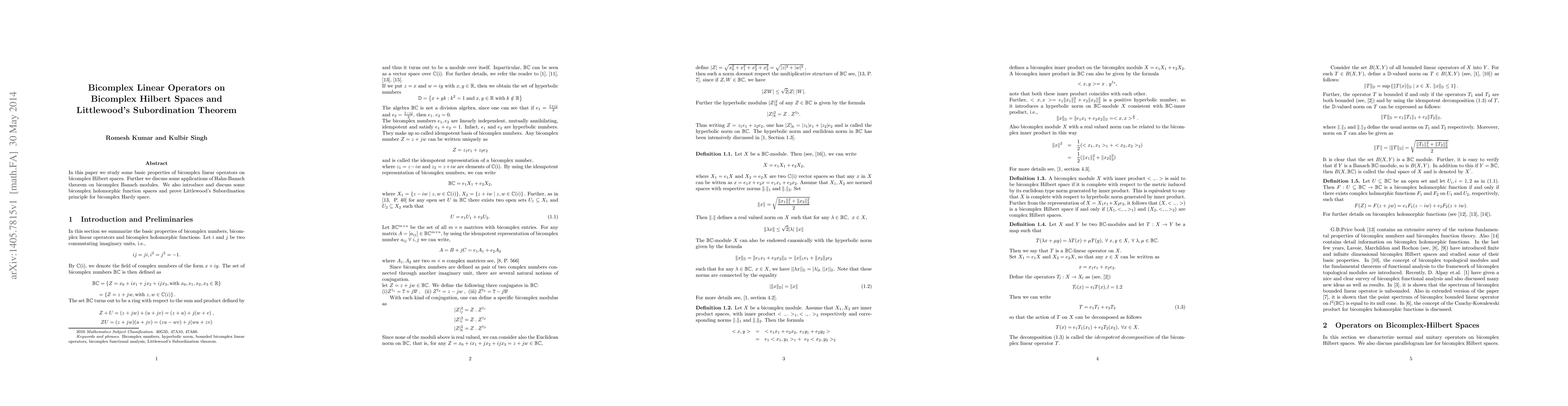 This paper investigates bicomplex linear operators within bicomplex Hilbert spaces, explores the Hahn-Banach theorem's application to bicomplex Banach modules, and establishes Littlewood's Subordination Theorem in the context of bicomplex Hardy spaces.