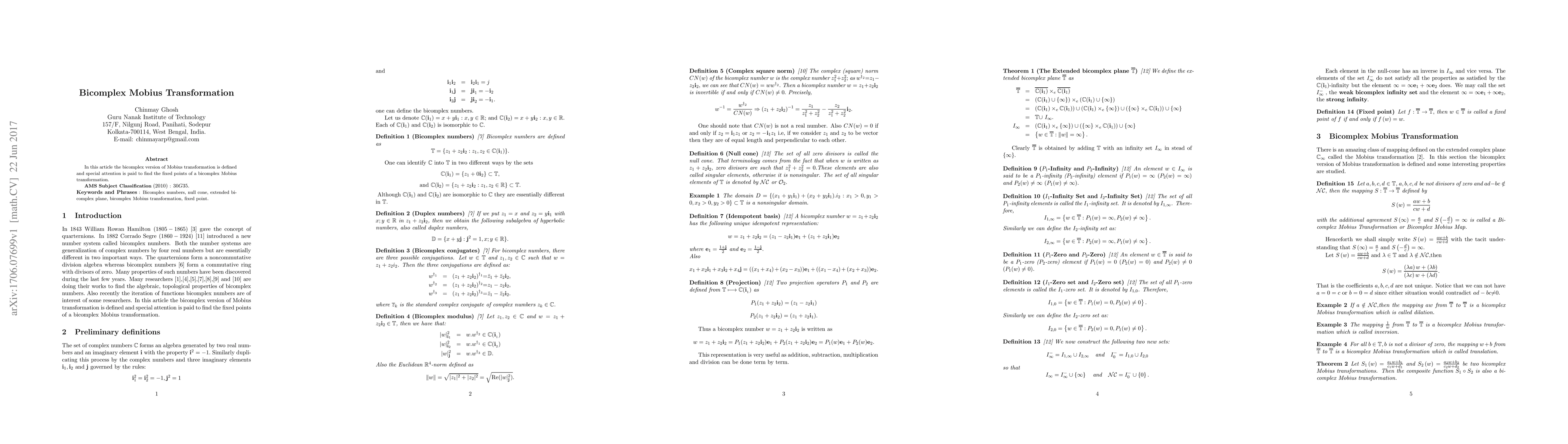 Summary: This paper defines the bicomplex version of Mobius transformation and focuses on identifying the fixed points of this transformation, providing insights into its unique properties in the bicomplex number system.